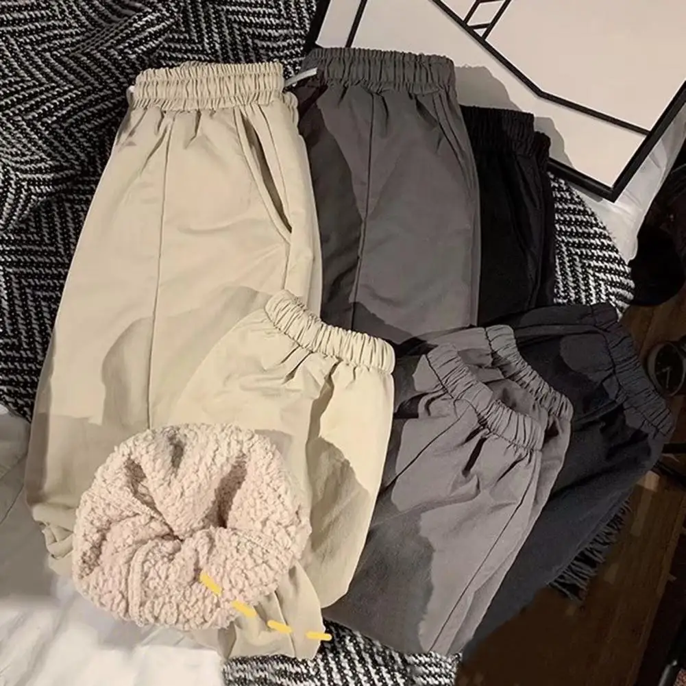 Мужские утепленные брюки, утепленные плюшевые брюки до щиколотки, повседневные теплые флисовые брюки большого размера, уличная одежда для осени и зимы, штаны