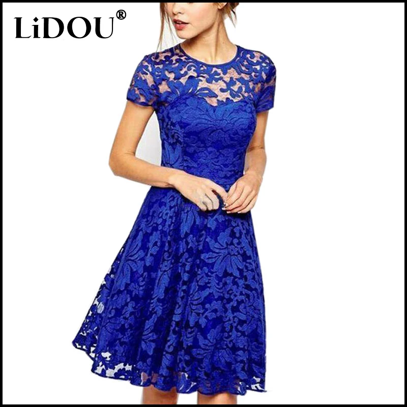 Модное кружевное платье с круглым вырезом и коротким рукавом, новин...