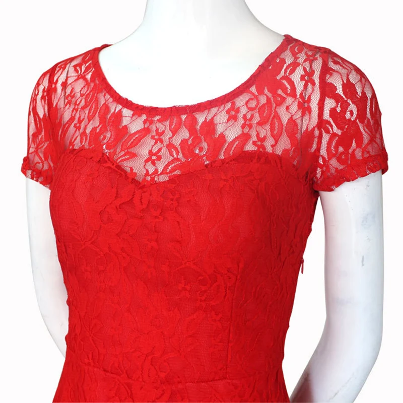 Женское кружевное коктейльное платье с коротким рукавом и круглым в...