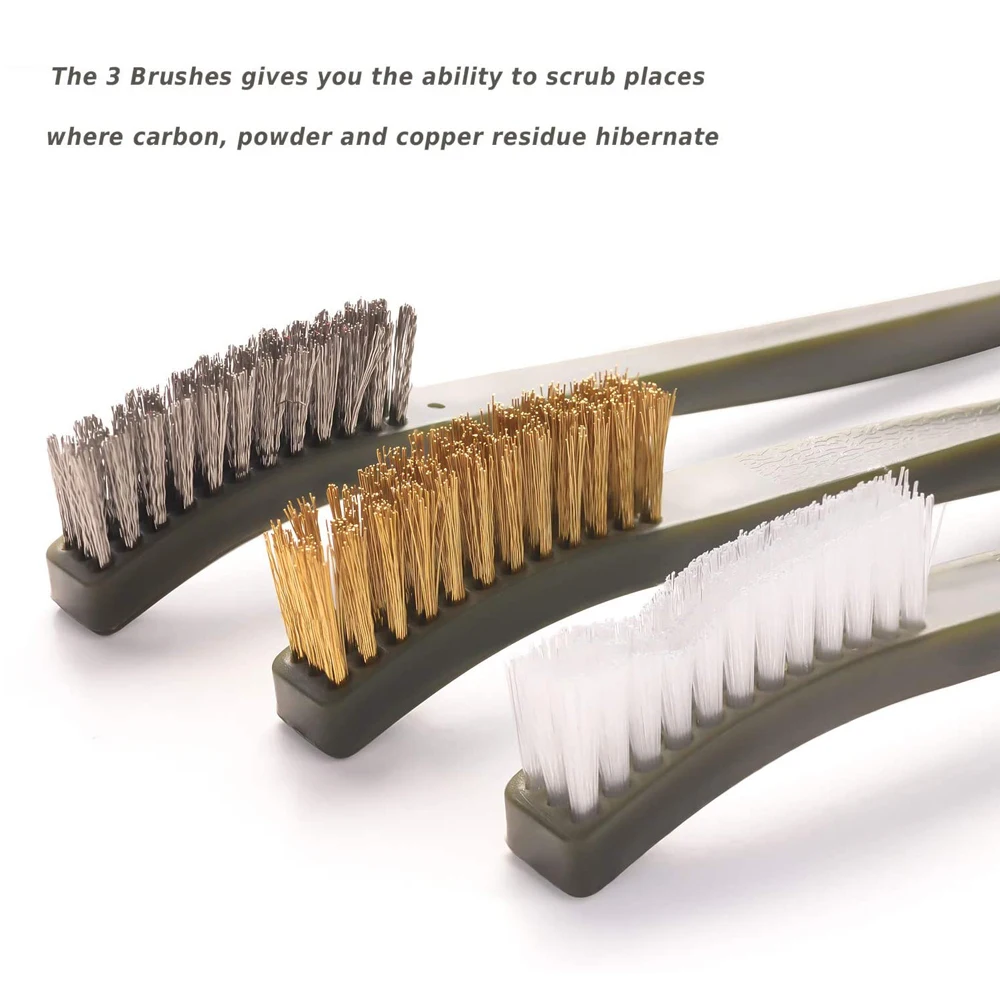 【Repeatable Use】-Очистка выбирается из прочной нержавеющей стали, а нейлоновые, бронзовые, стальные кисточки с щетиной (от мягкой до твердой) помогут легко очистить пыль или грязь от вашего оружия. Они очень усердно работают в течение длительного времени.