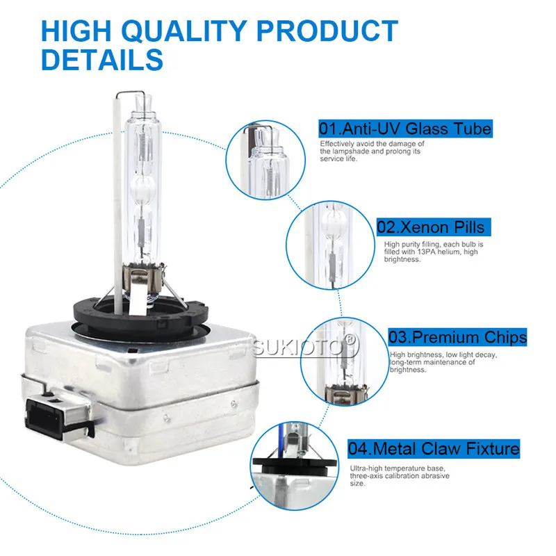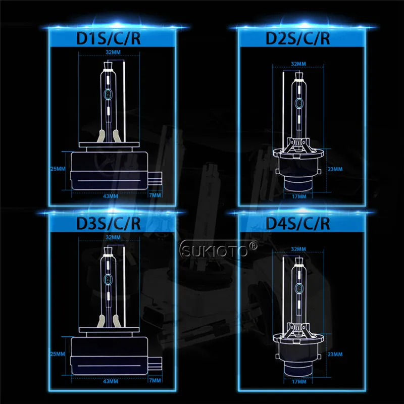 Ксеноновая лампа SUKIOTO D2S для автомобильных фар, 4300 лм, 35 Вт, 55 Вт, D1S, D2S, D2R, D4R, D4S, D3S, 5000K, 6000K, 8000K, 10000K