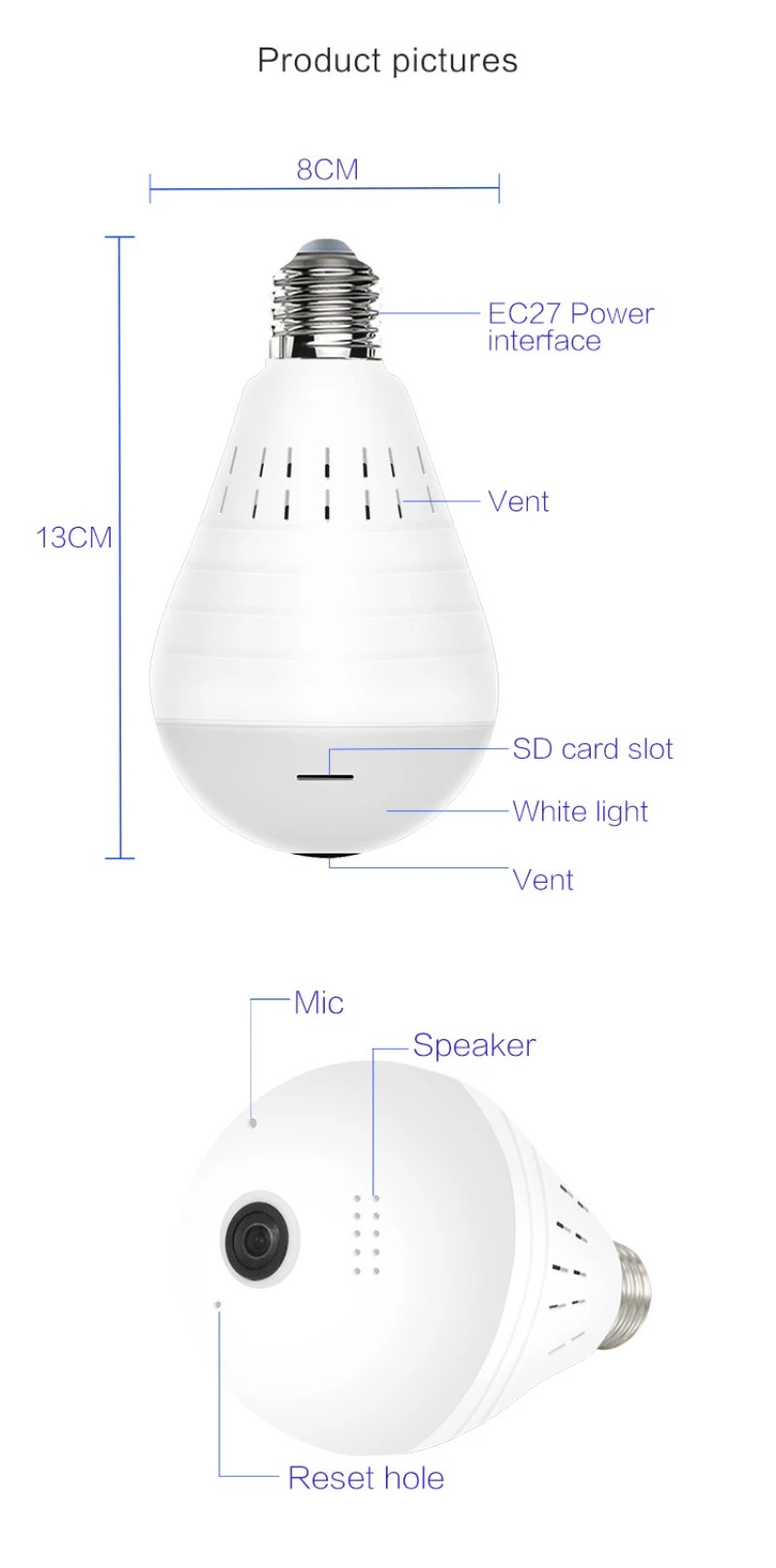 960P Wifi панорамная камера лампа 360 градусов рыбий глаз беспроводная домашняя безопасность видео наблюдение версия двухстороннее аудио