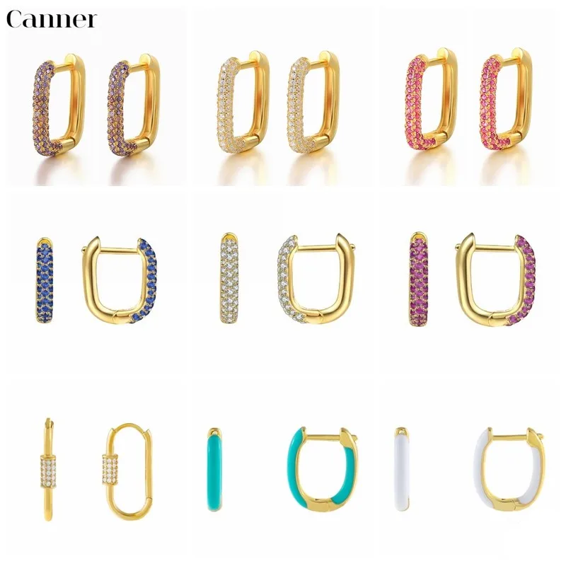 CANNER 18k посеребренные красочные циркон большой круг обруч серьги для женщин u-образные Huggies пряжки для ушей ювелирные серьги в подарок