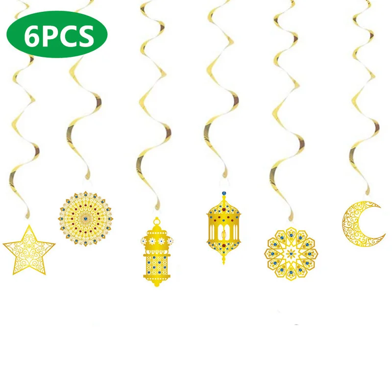 6 шт. ИД Мубарак спиральный баннер исламский мусульманский Золотой крутящийся ИД подвеска флажки хадж Мубарак Праздник Вечеринка Рамадан украшение для дома