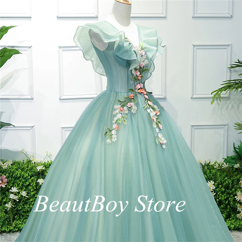 Элегантные зеленые платья Quinceanera с V-образным вырезом, Вечернее бальное платье для выпускного вечера, роскошное вечернее официальное платье для женщин, Платья для вечеринок