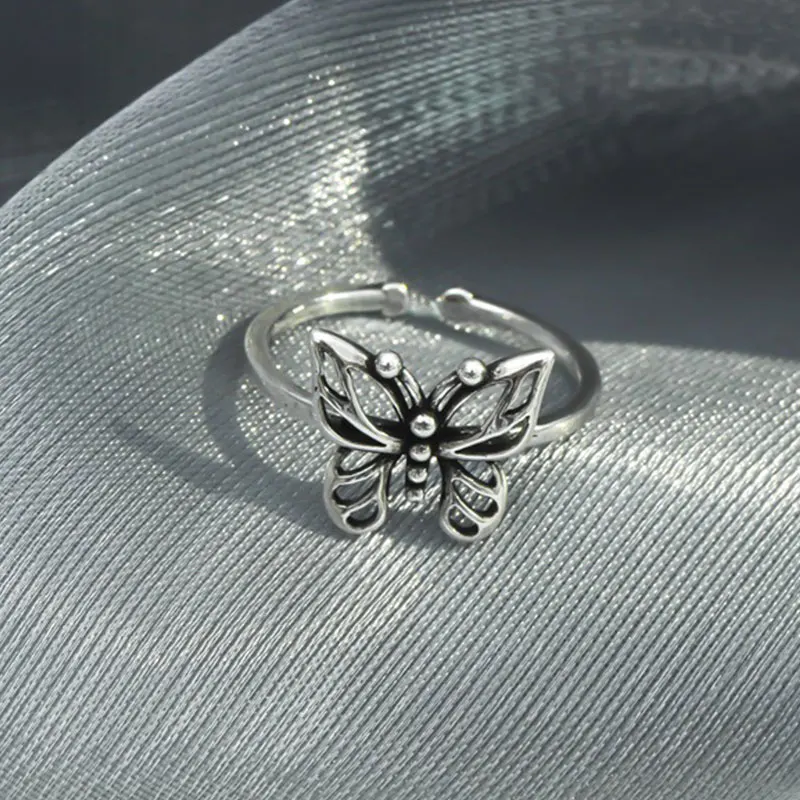 Женское посеребренное кольцо в стиле ретро, резное украшение на палец в форме бабочки с вырезами, дизайнерское Ювелирное Украшение на годовщину