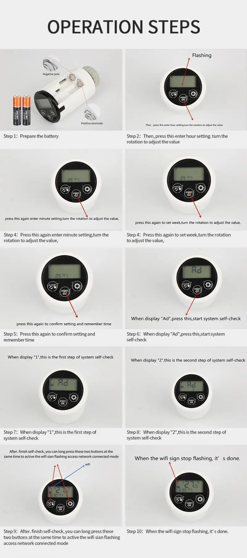 Новый мини-дизайн с простым и четким ЖК-экраном на корпусе, термостат радиатора с ЖК-цифровым дисплеем и двумя секциями аккумуляторов, который является специальным клапаном, использующим вместе с нагревательным радиатором. Искусственно устанавливаемая температура в помещении, в основном используется в системе напольного отопления для контроля закрытия и открытия трубы.