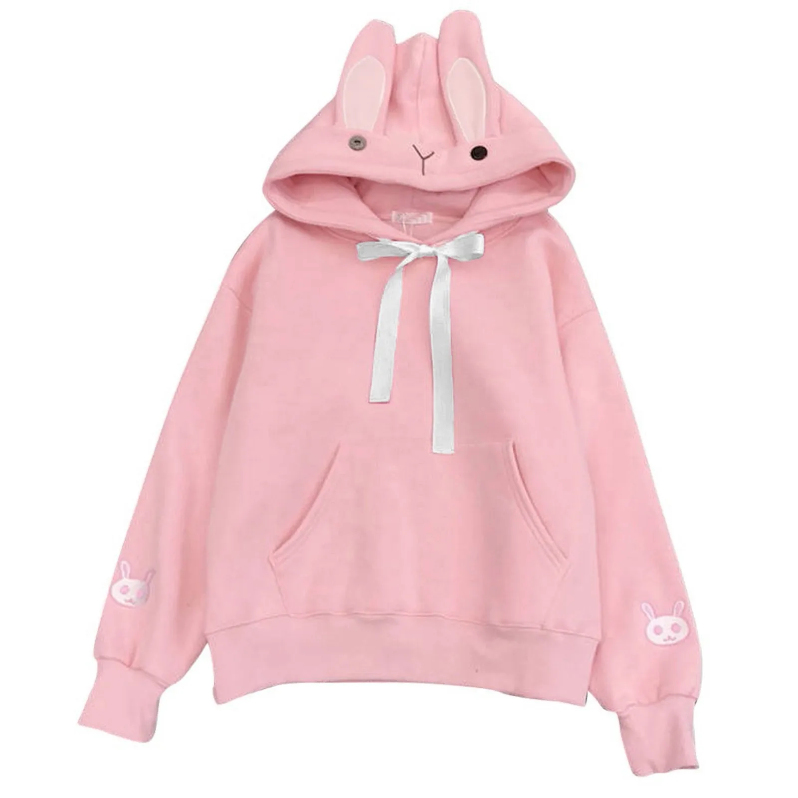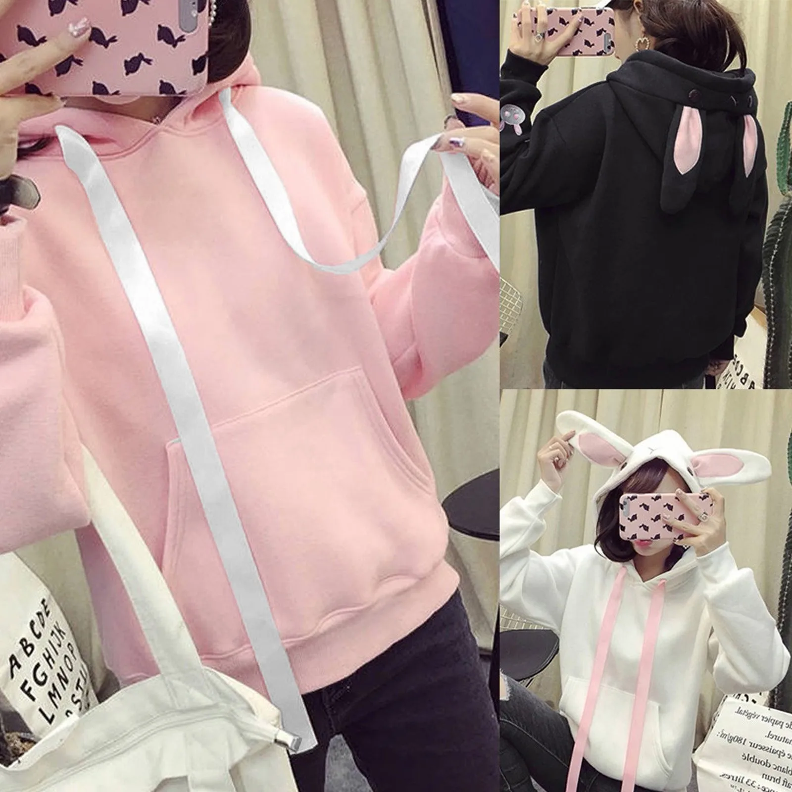 Милые толстовки Harajuku с милыми кроличьими ушками, модная женская Свободная Толстовка с длинным рукавом и кулиской, женские толстовки