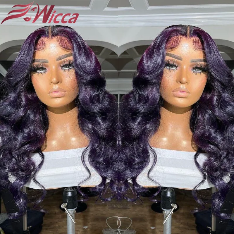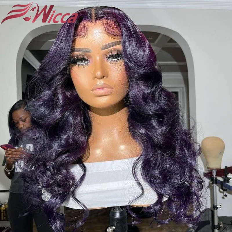 Темно-фиолетовые цветные человеческие волосы 13x 4 на сетке спереди, парики для женщин, плотность 180, волнистые, предварительно выщипанные, бразильские, Remy с детскими волосами