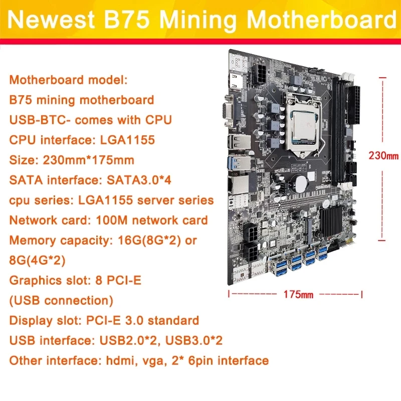 Набор материнской платы B75 для майнинга, поддержка ЦП с памятью DD...