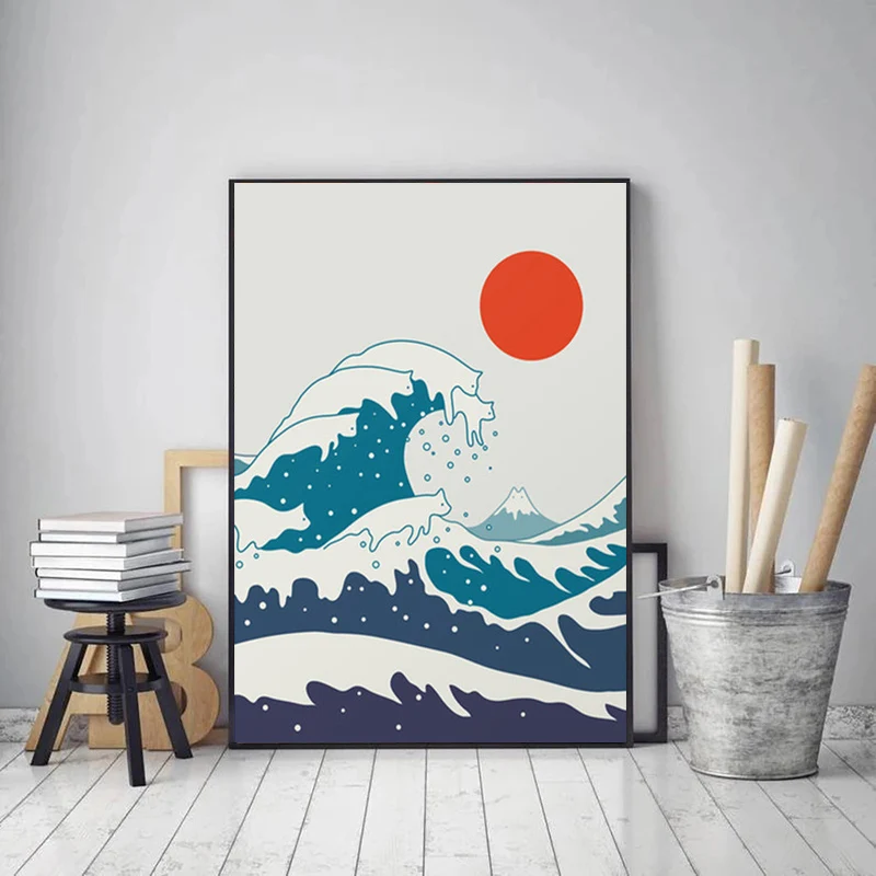 Абстрактные животные, кошка, пейзаж, плакаты и принты, настенное искусство, большая волна, холст, живопись, горы, солнце, картина для декора гостиной
