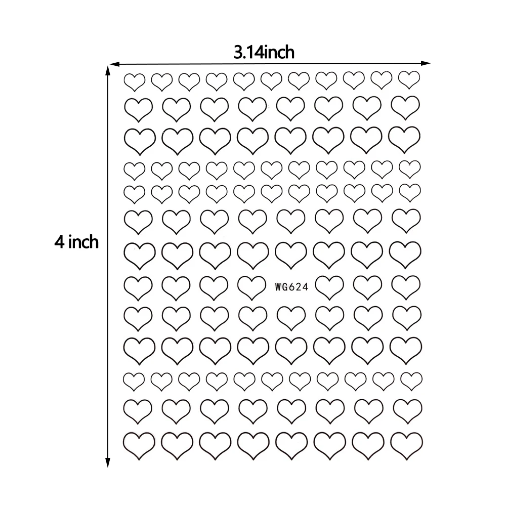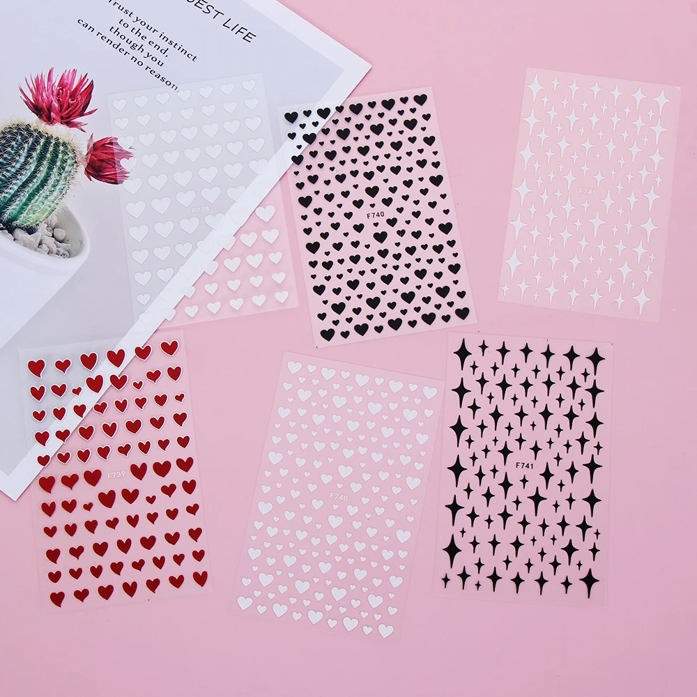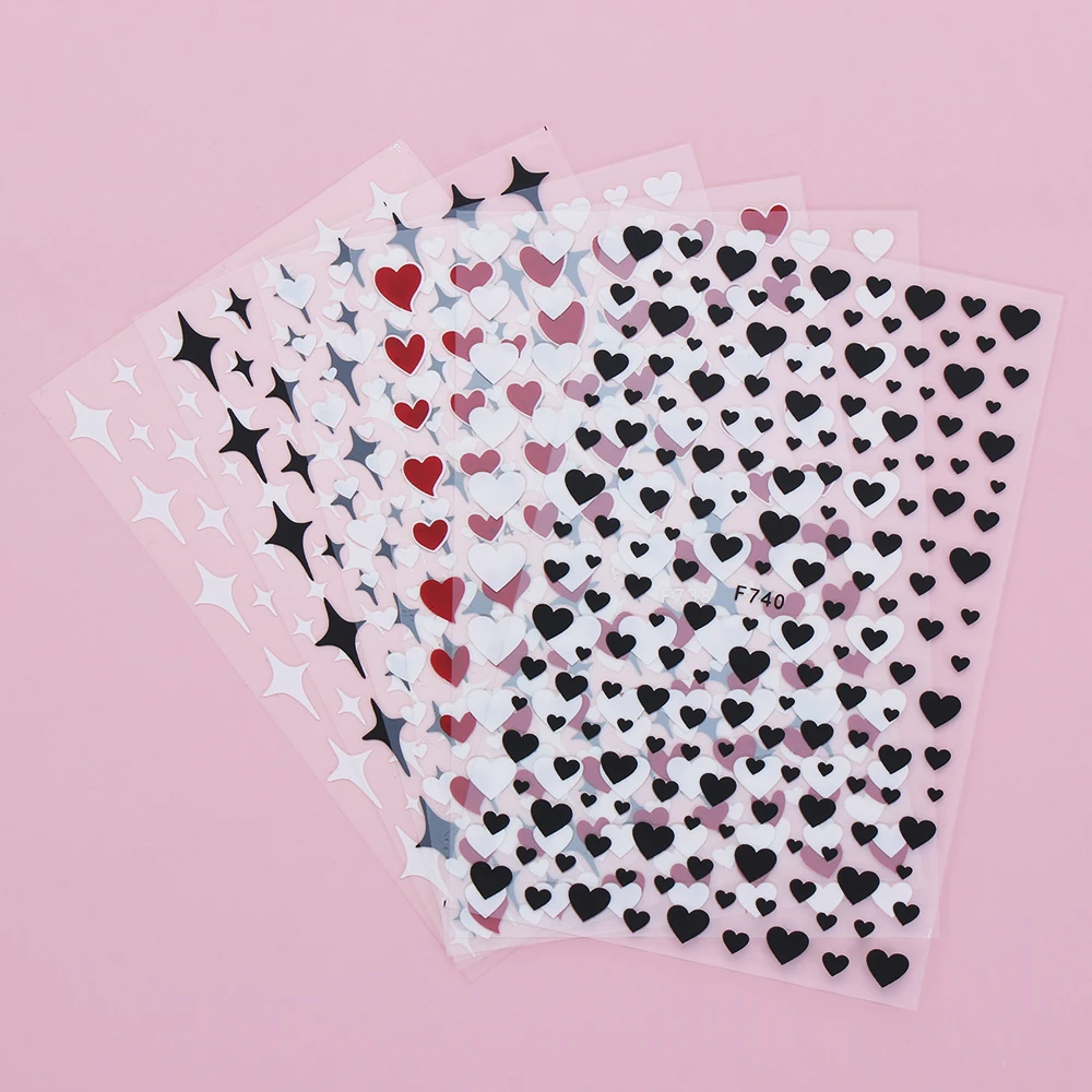 Полыеоднотонные наклейки для ногтей в форме сердца, 3D наклейки для ногтей, черные, красные самоклеящиеся слайдеры, декор для ногтевого дизайна, День Святого Валентина, наклейки для маникюра