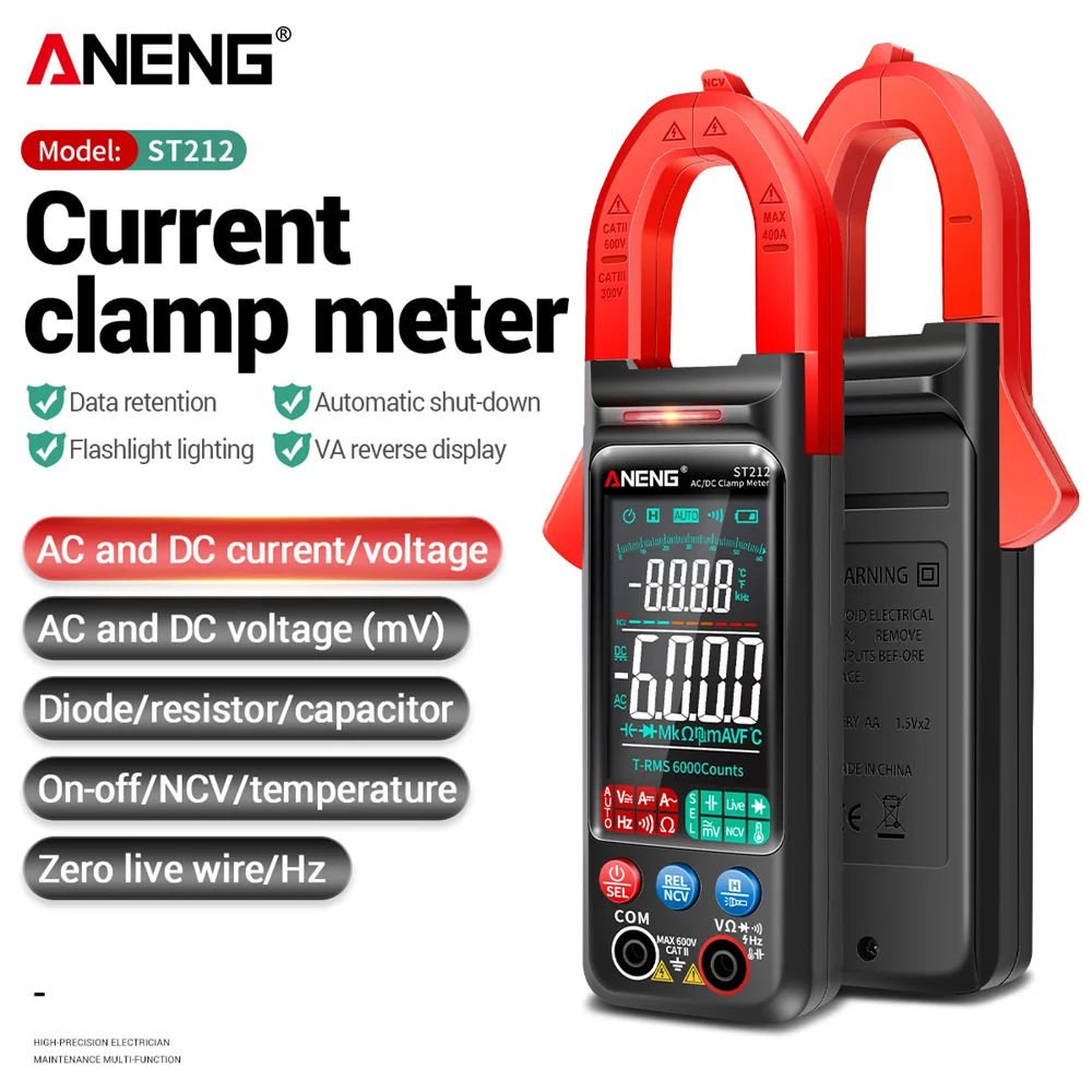 Цифровой мультиметр ANENG ST212, мультиметр постоянногопеременного тока, 6000 отсчетов, 400А, с большим цветным экраном