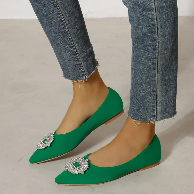 Женские туфли на плоской подошве, с острым носком и пряжкой