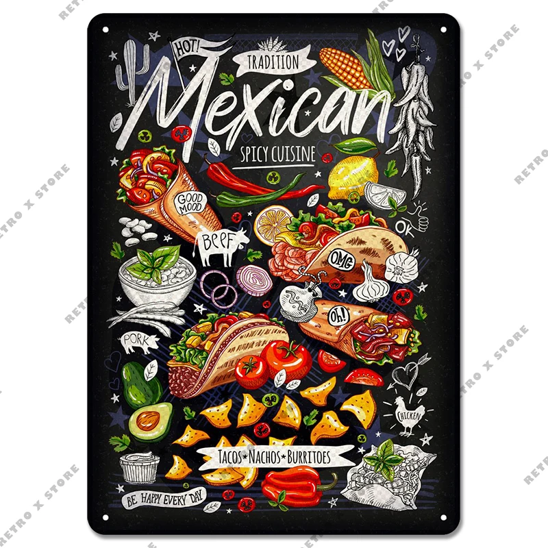 Мексиканский металлический постер Yummy, гамбургеры, Тако, пицца, ж...