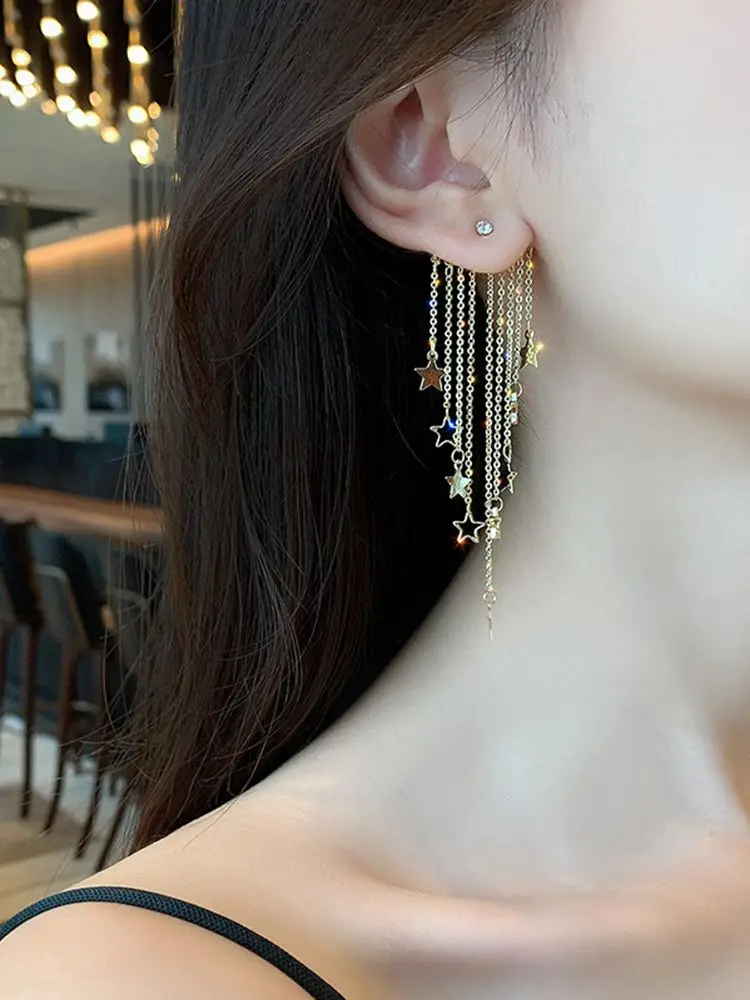 Крупные серьги-кисточки со звездами, серьги-подвески со звездами для пирсинга, Женские многослойные серьги-цепочки с кристаллами, ювелирные изделия