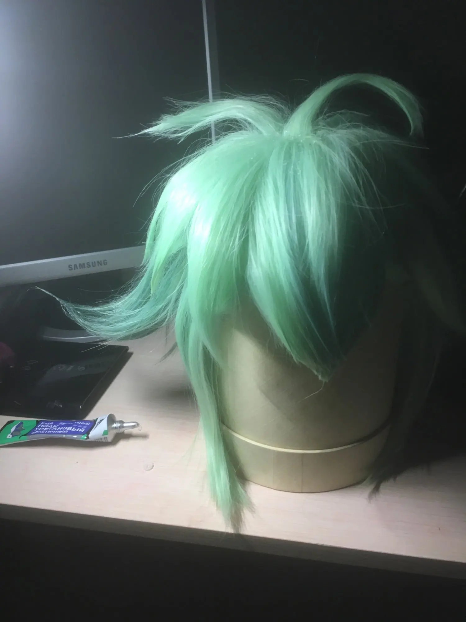 И так начну с того что на фото парик уже уложен к нему надо докупить уши потому что «уши»из волос это трэш. Намучилась с ним знатно да и честно сказать сейчас не лучше. Изначально «уши» смотрели в перёд и не плойкой и не феном с расчёской они не закручивались. Но в принципе это не самое худшее что могло бы быть.