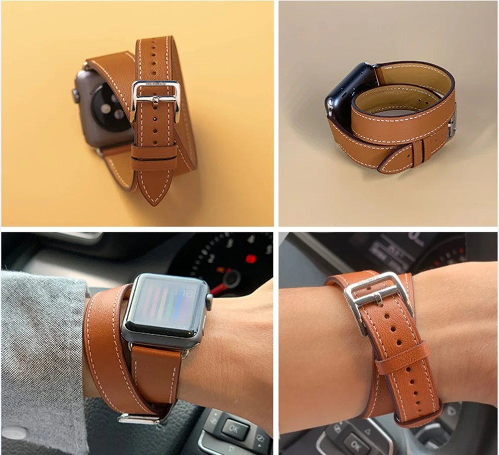 Новый кожаный ремешок для apple watch se Double Tour band 44 мм 40 ...