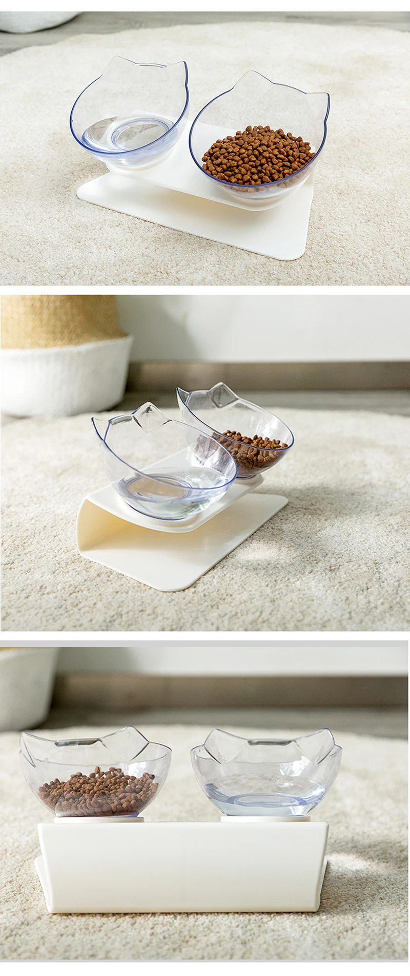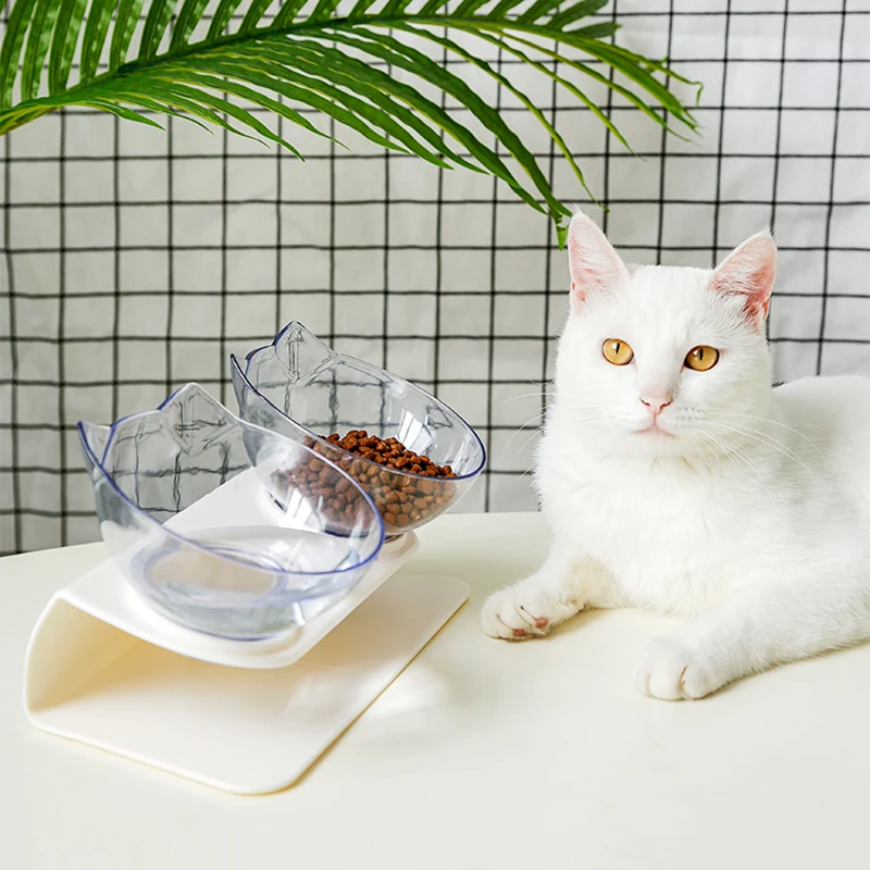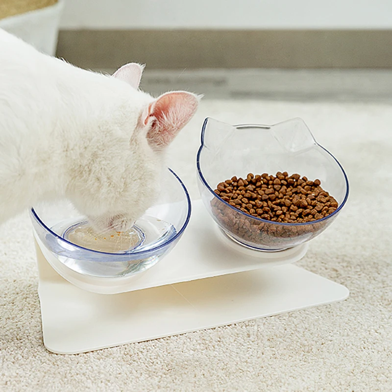 Нескользящая двойная миска для питомцев с подставкой, для кормления кошек и других питомцев, для защиты шейного отдела позвоночника