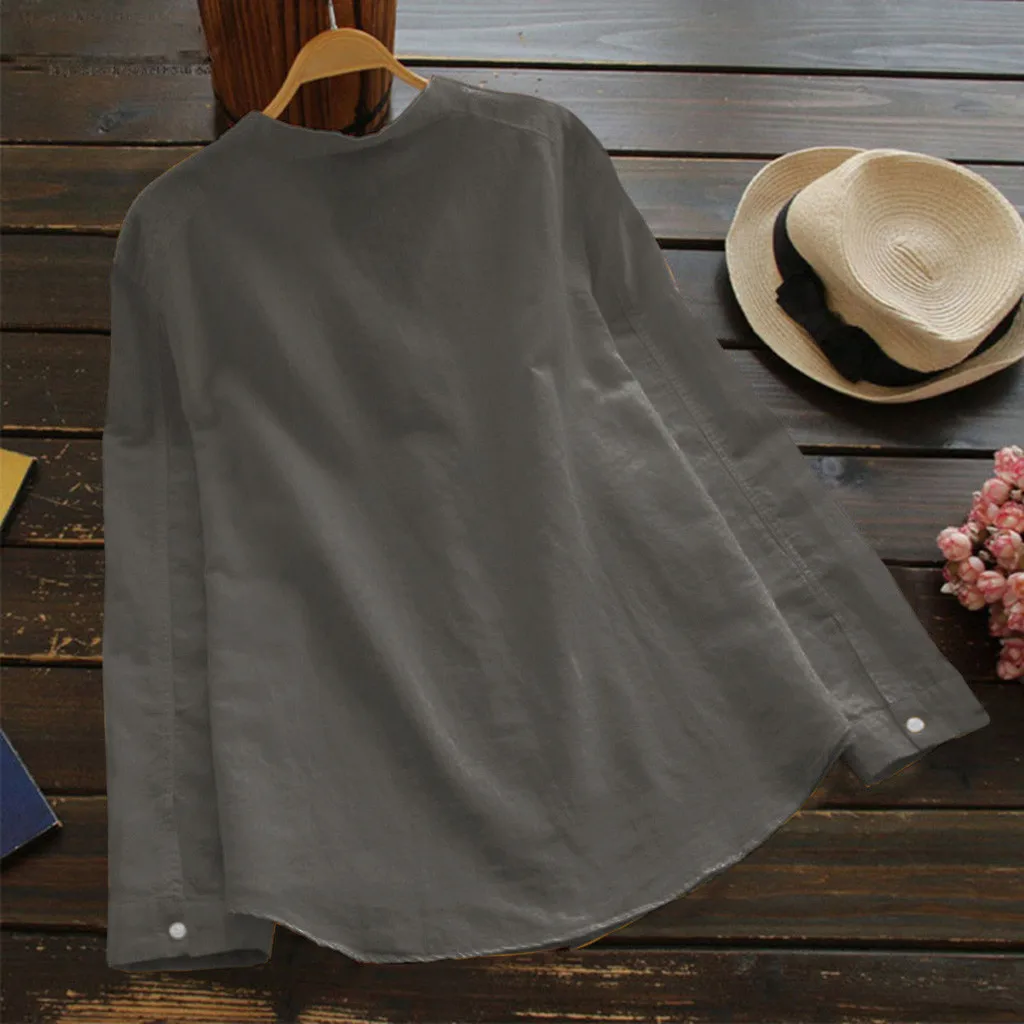 Блузка женская с длинным рукавом, на пуговицах, из хлопка и льна