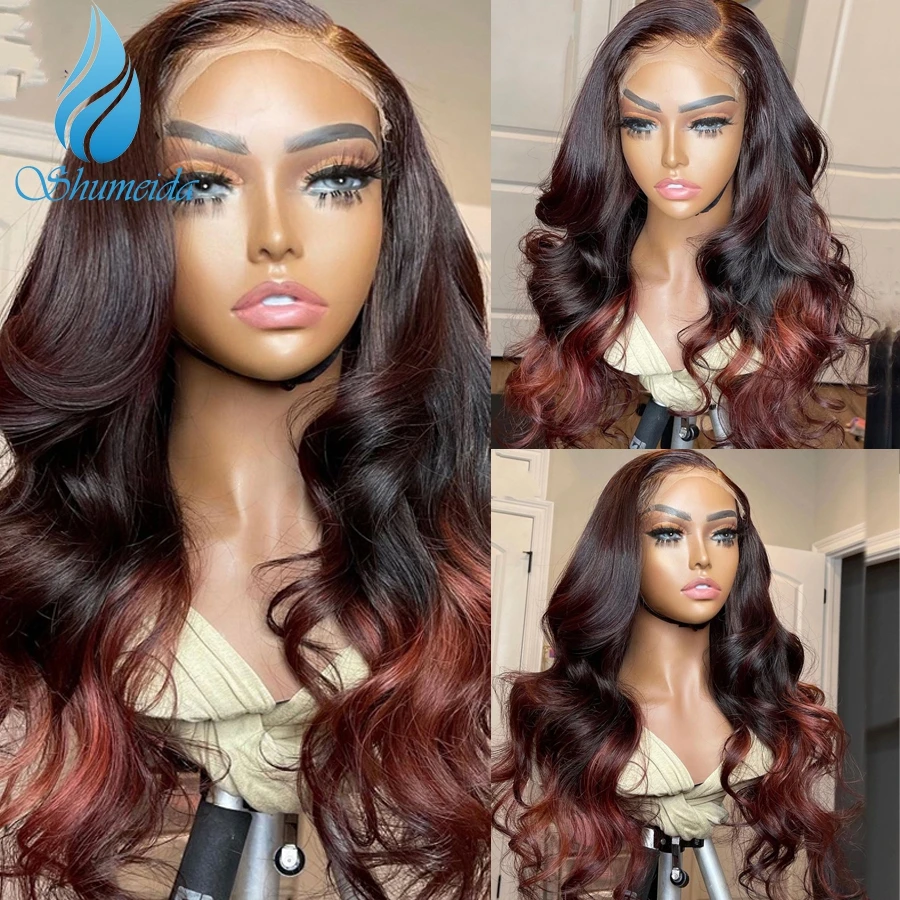 Shumeida Омбре коричневый цвет 13*4 кружевные передние человеческие парики бразильские неповрежденные человеческие волосы клеящие парики для женщин детские волосы предварительно выщипанные