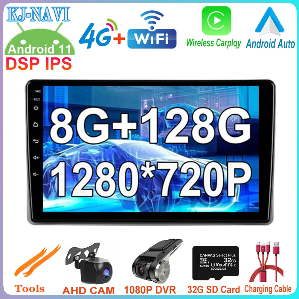 1280*720P 8G + 128G DSP Android 11 CARPLAY автомобильный Радио плее...