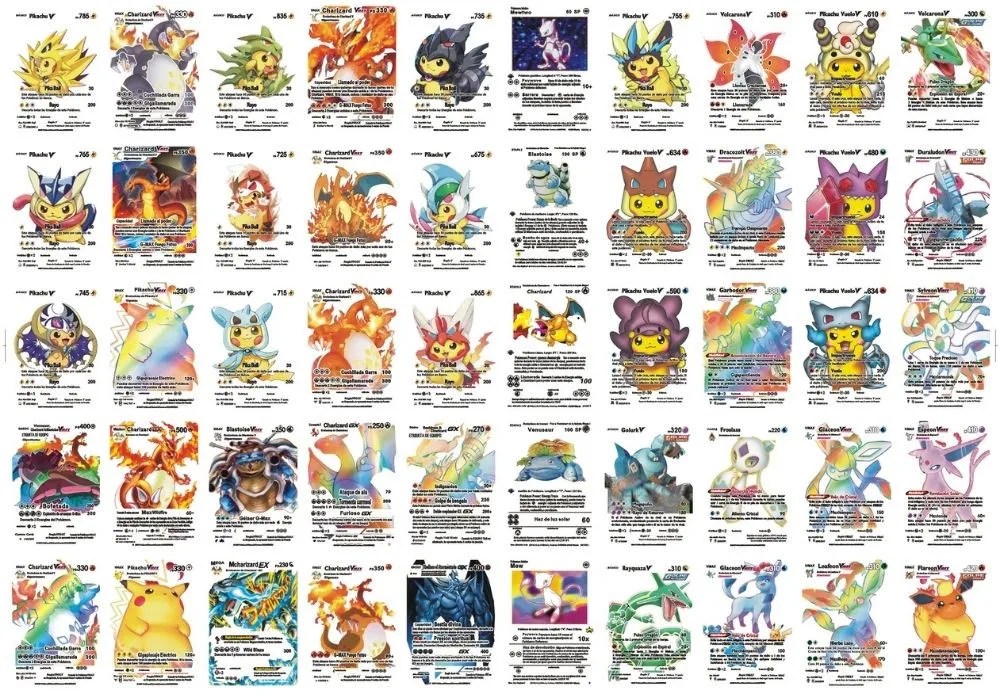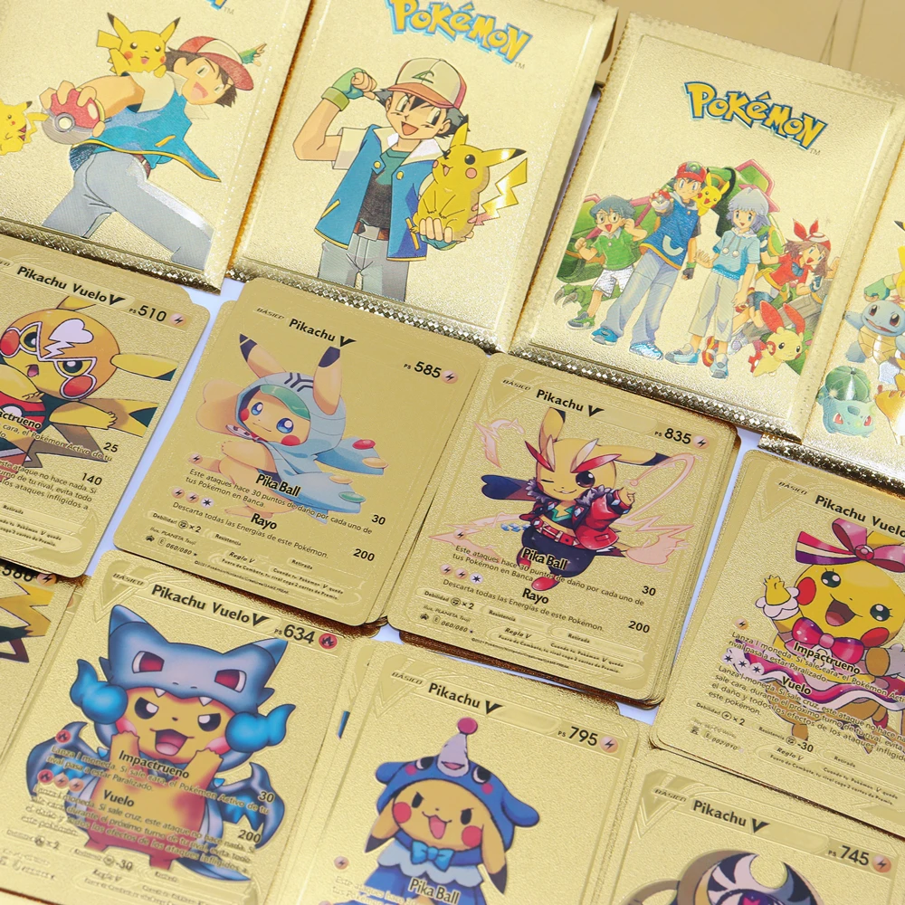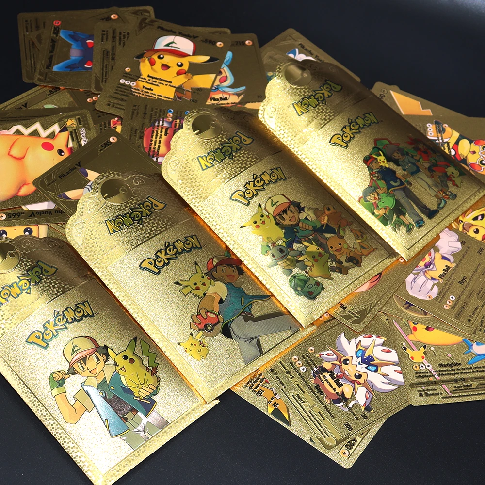 54 шт., металлические золотые карточки с покемоном