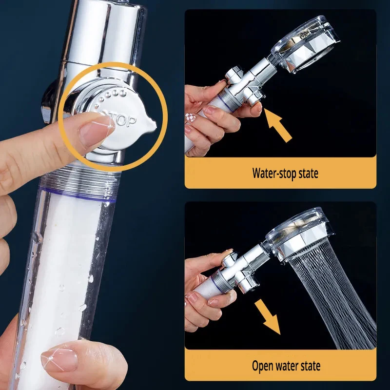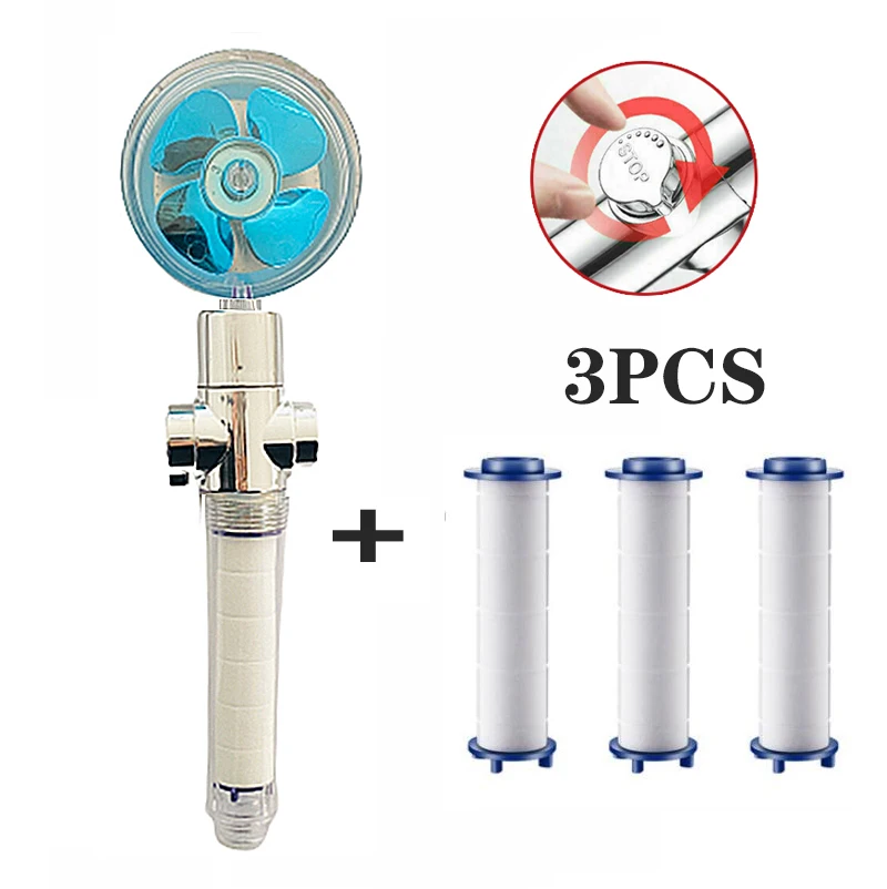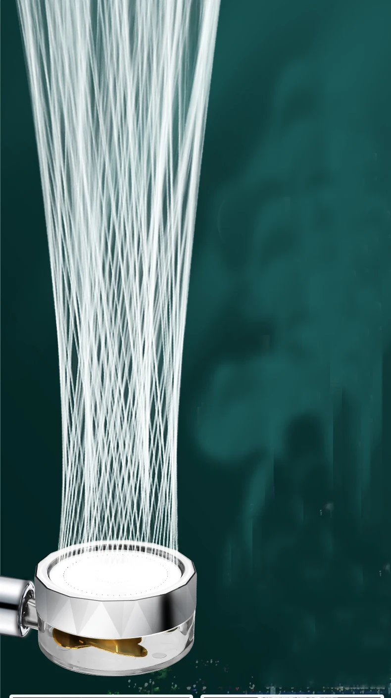 Турбонасадка для душа с пропеллером и фильтром, водосберегающий поток, 360 градусов, высокоточная насадка для душа, дождевая насадка с распылителем вентилятора Nozzl