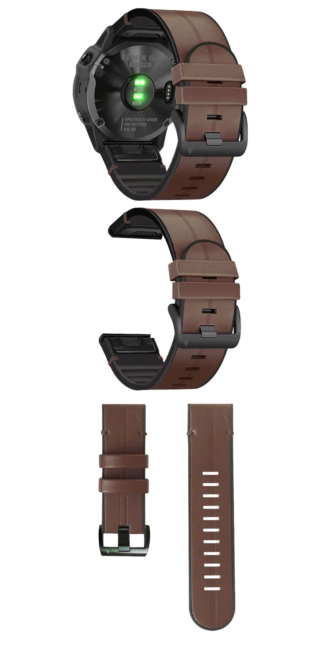 Ремешок кожаный для наручных часов Garmin Fenix 5 Plus 6 Pro 5X 6X ...
