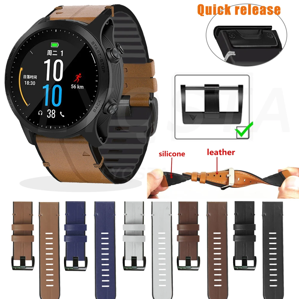 Ремешок из силикагеля и кожи для Garmin Fenix 6 6X Pro, быстросъемный браслет для Fenix 3 3HR 5X 5 Plus Forerunner 935 945
