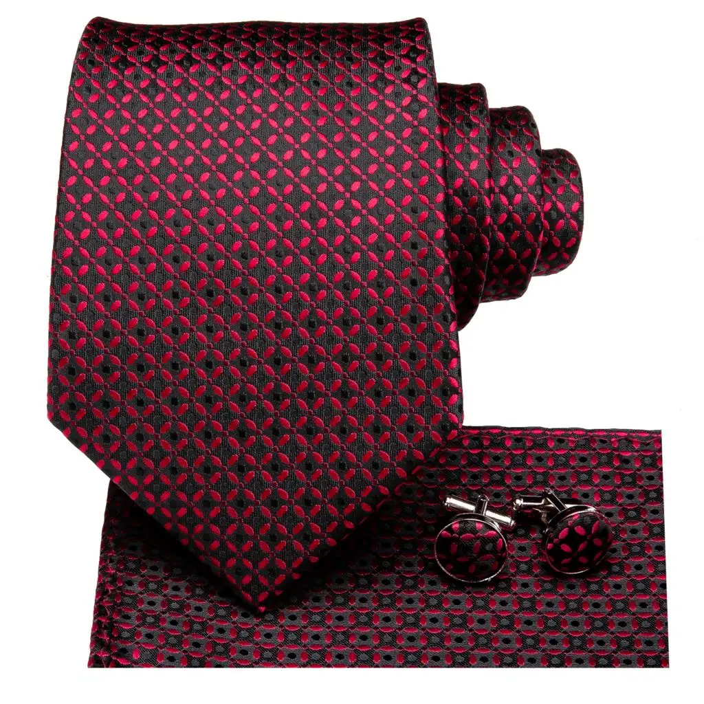 Темно-красный черный клетчатый Шелковый Свадебный галстук для мужчин Handky Cufflink Подарочный мужской галстук модный дизайнерский бизнес вечерние прямые поставки
