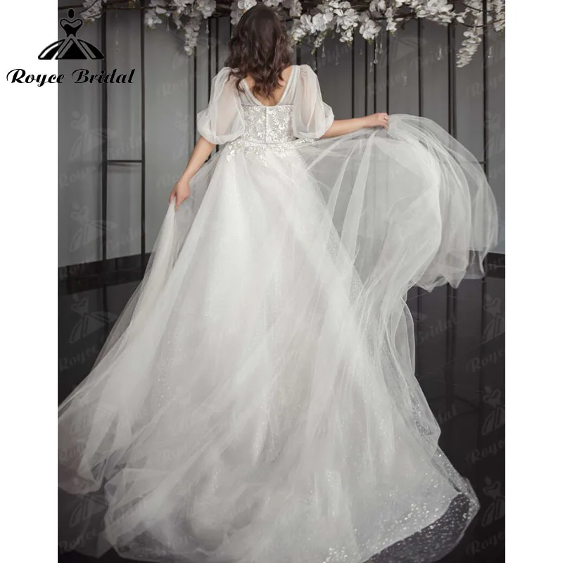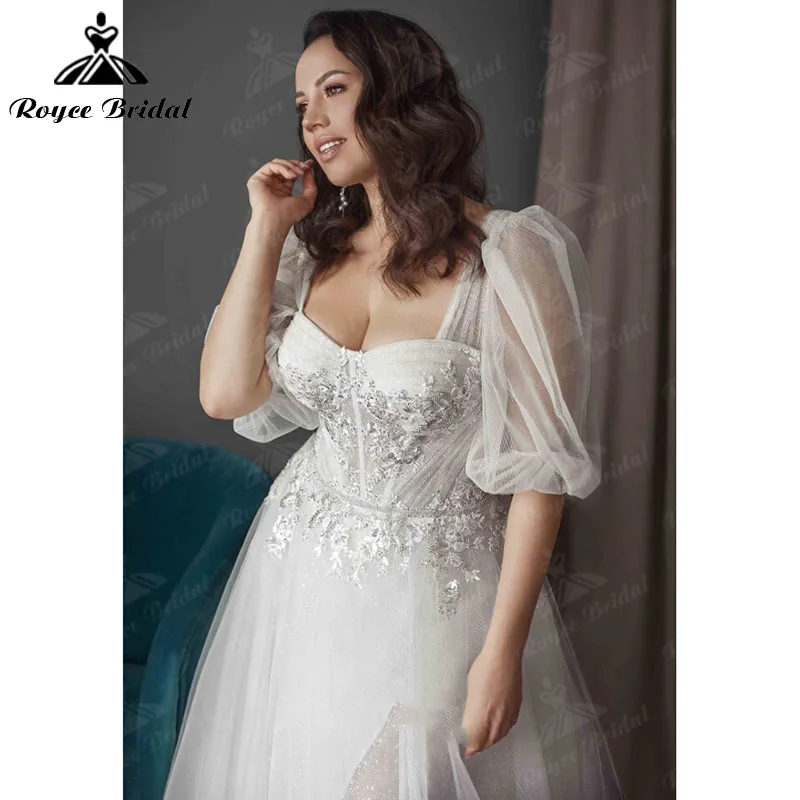 Блестящие блестящие свадебные платья, женское блестящее платье с разрезом сбоку, коротким рукавом-фонариком, 2022