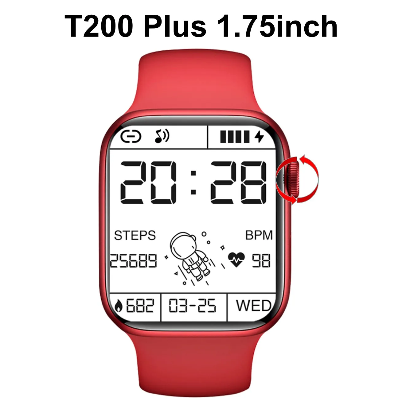 Смарт-часы T200 Plus с поддержкой Bluetooth и пульсометром, 1,75 дюйма