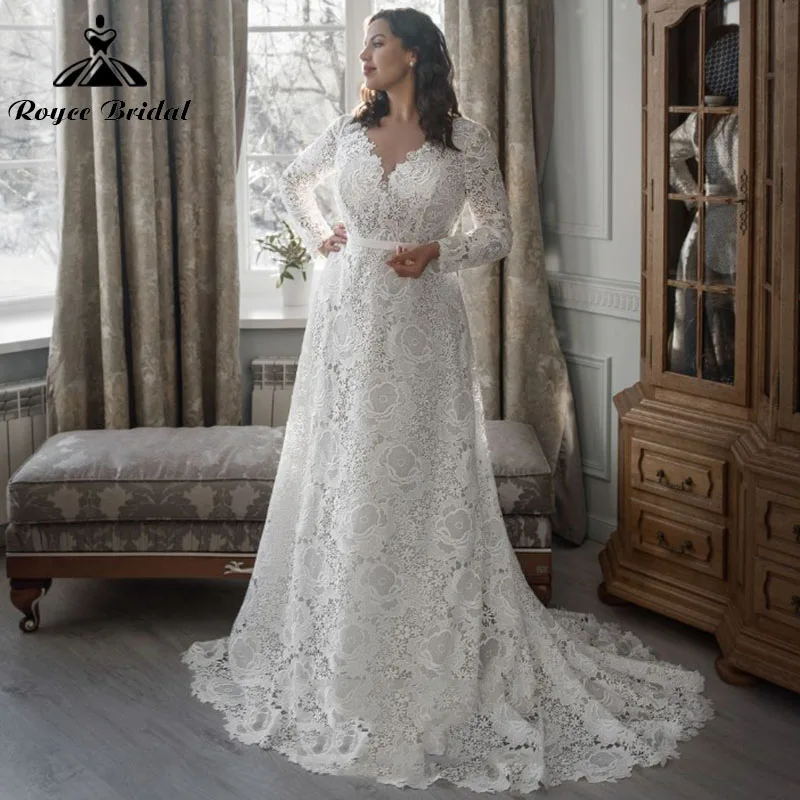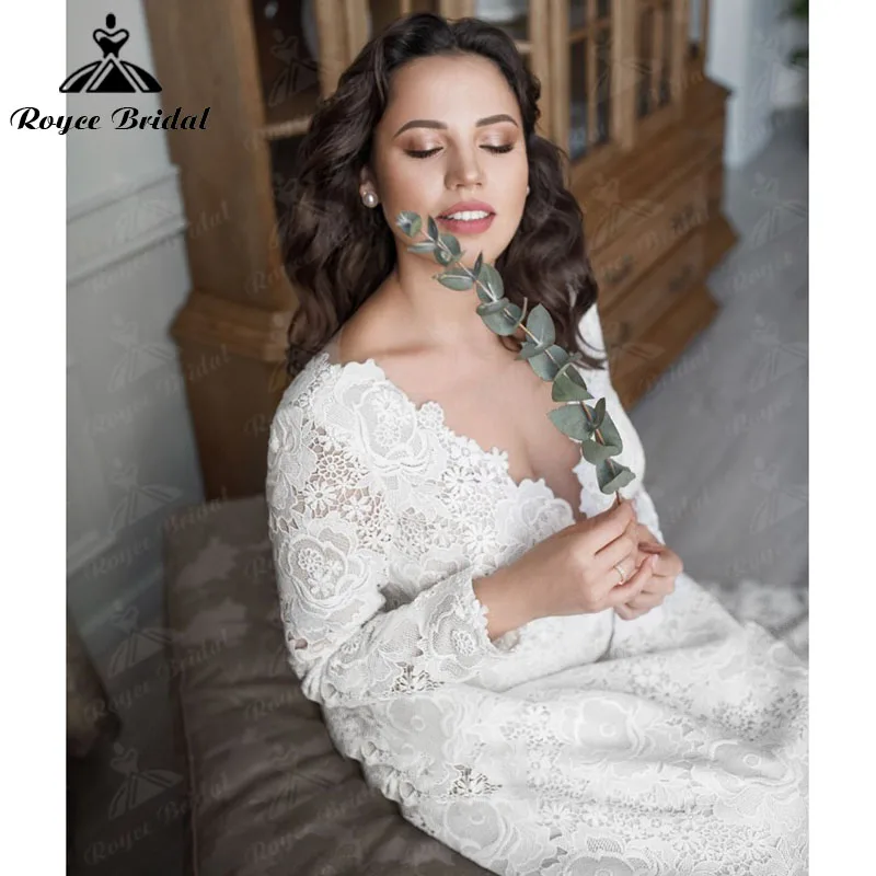 Богемное свадебное платье А-силуэта в богемном стиле с длинными рук...