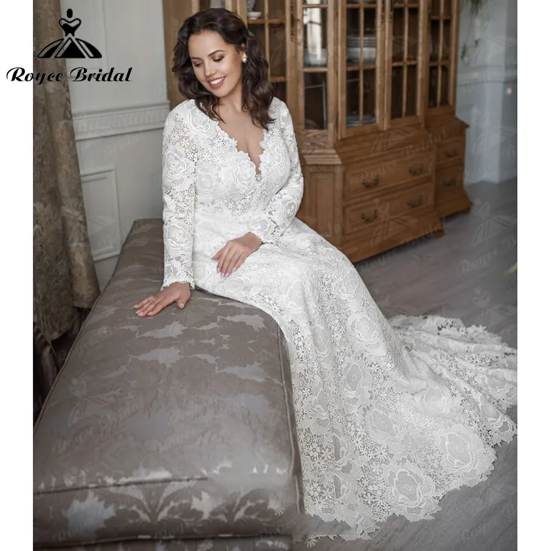 Женское свадебное платье с юбкой-годе, длинным рукавом и цветочным ...