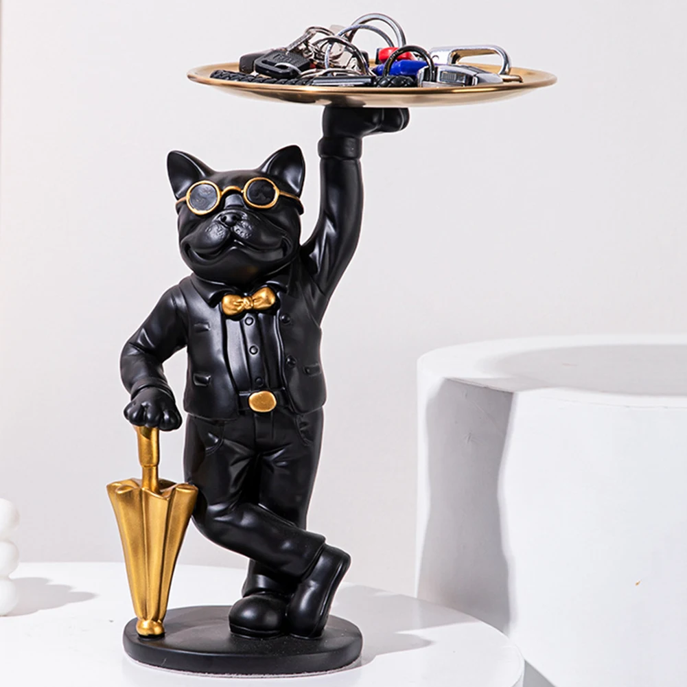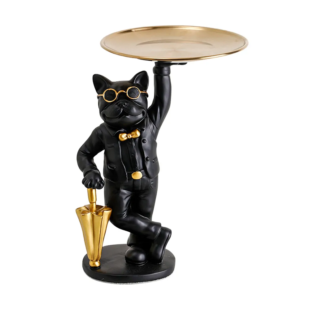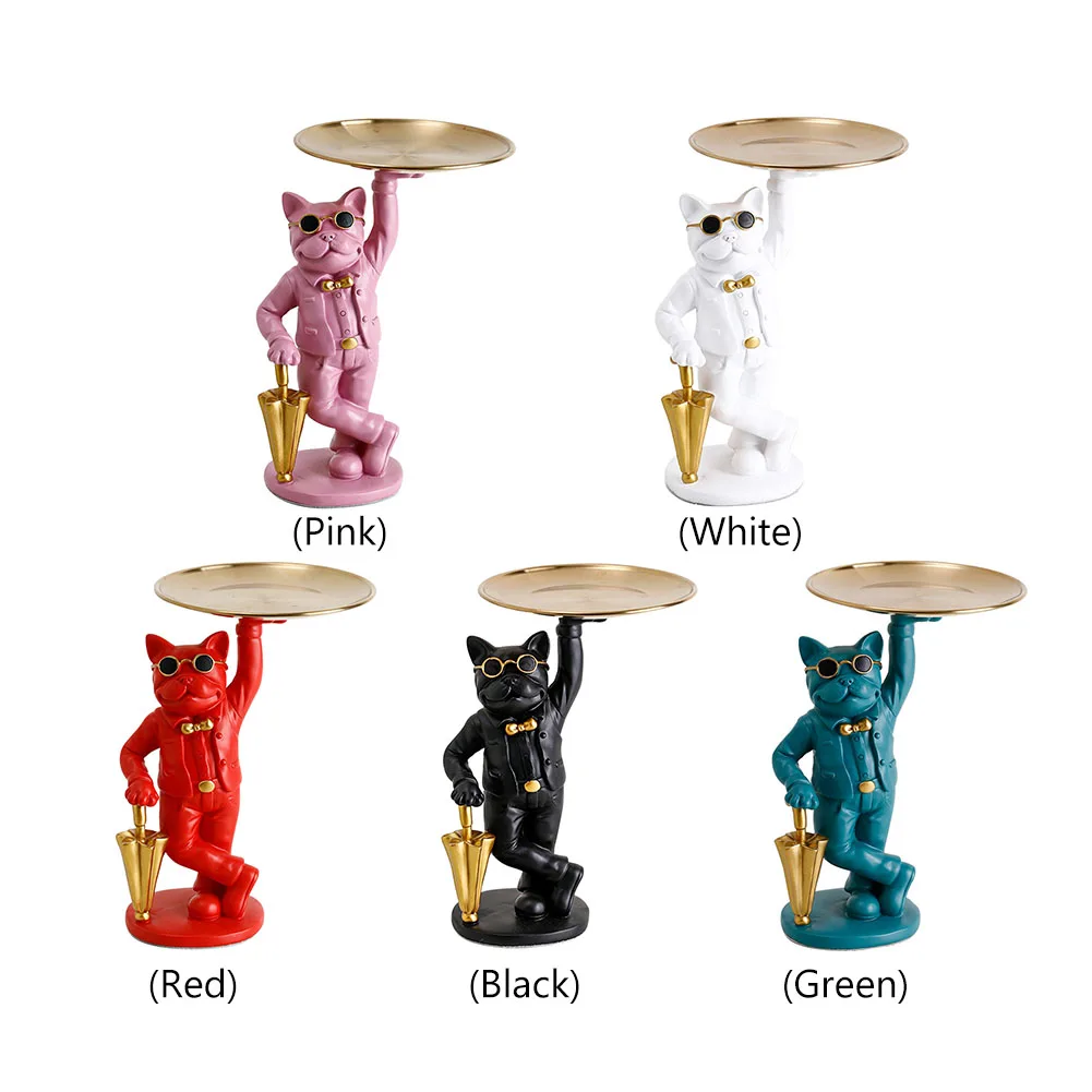 Скульптура французского бульдога, статуя скандинавского стиля, Современная фигурка собаки из смолы, держатель для хранения ключей, стеклянная тарелка, поднос для конфет, настольный органайзер, украшение для дома, искусство, подарок