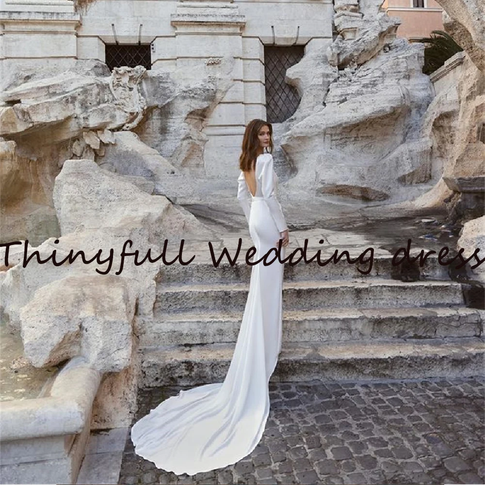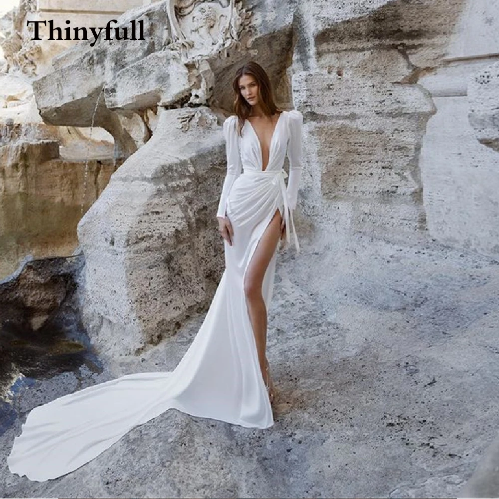 Простое свадебное платье в стиле бохо Thinyfull с высоким Боковым Разрезом, длинное платье в пол с открытой спиной для принцессы, свадебные платья, Длинные официальные платья