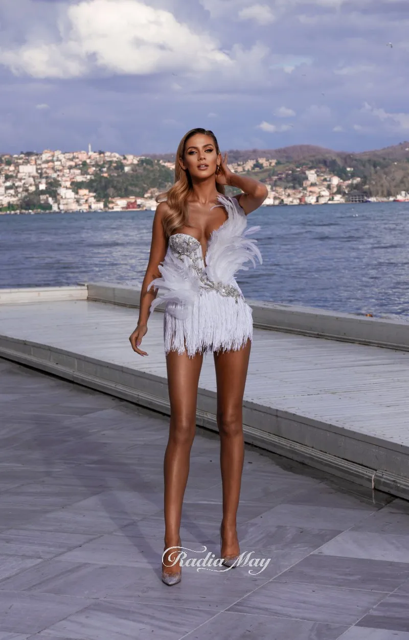 Сексуальные короткие белые платья Radia May для выпускного вечера 2...