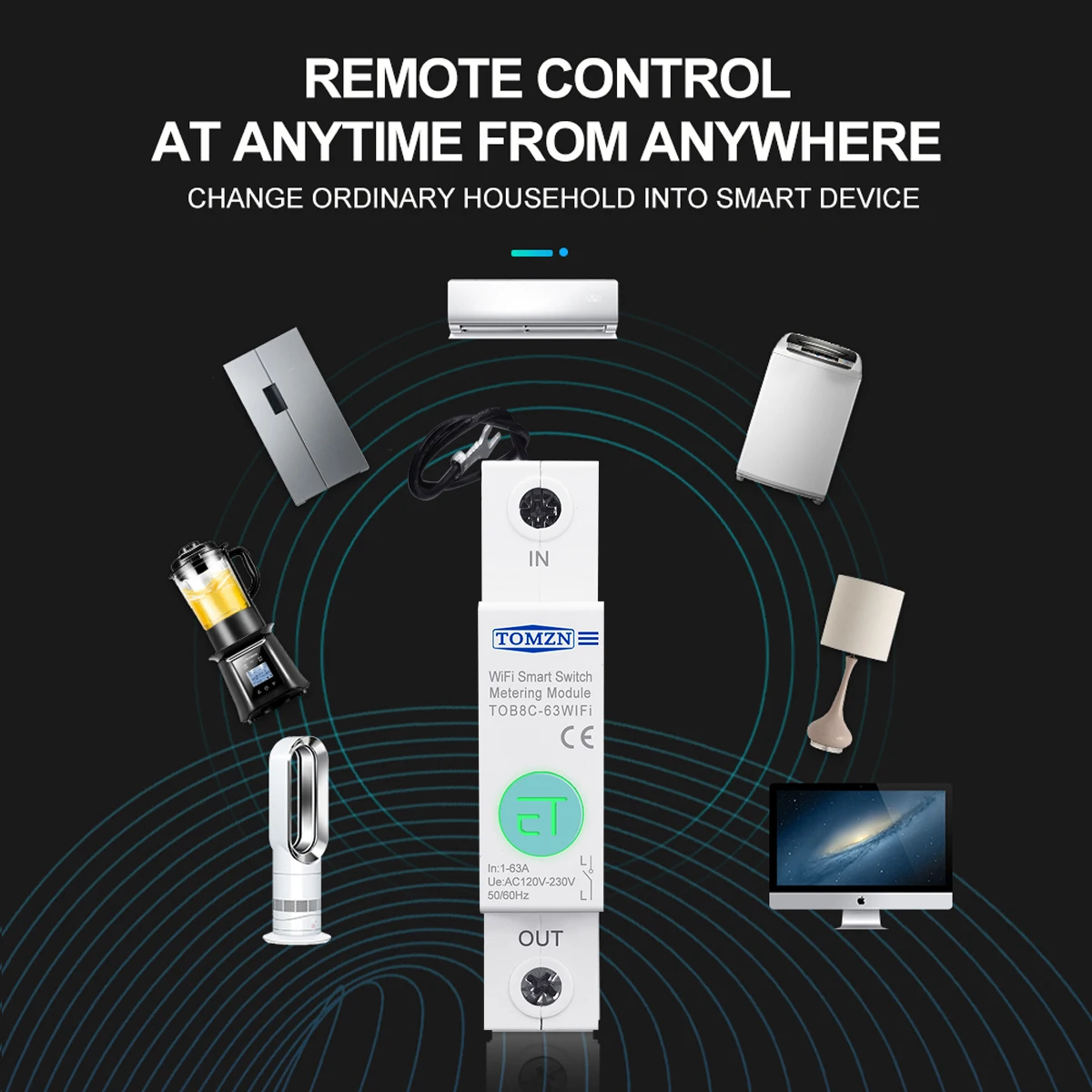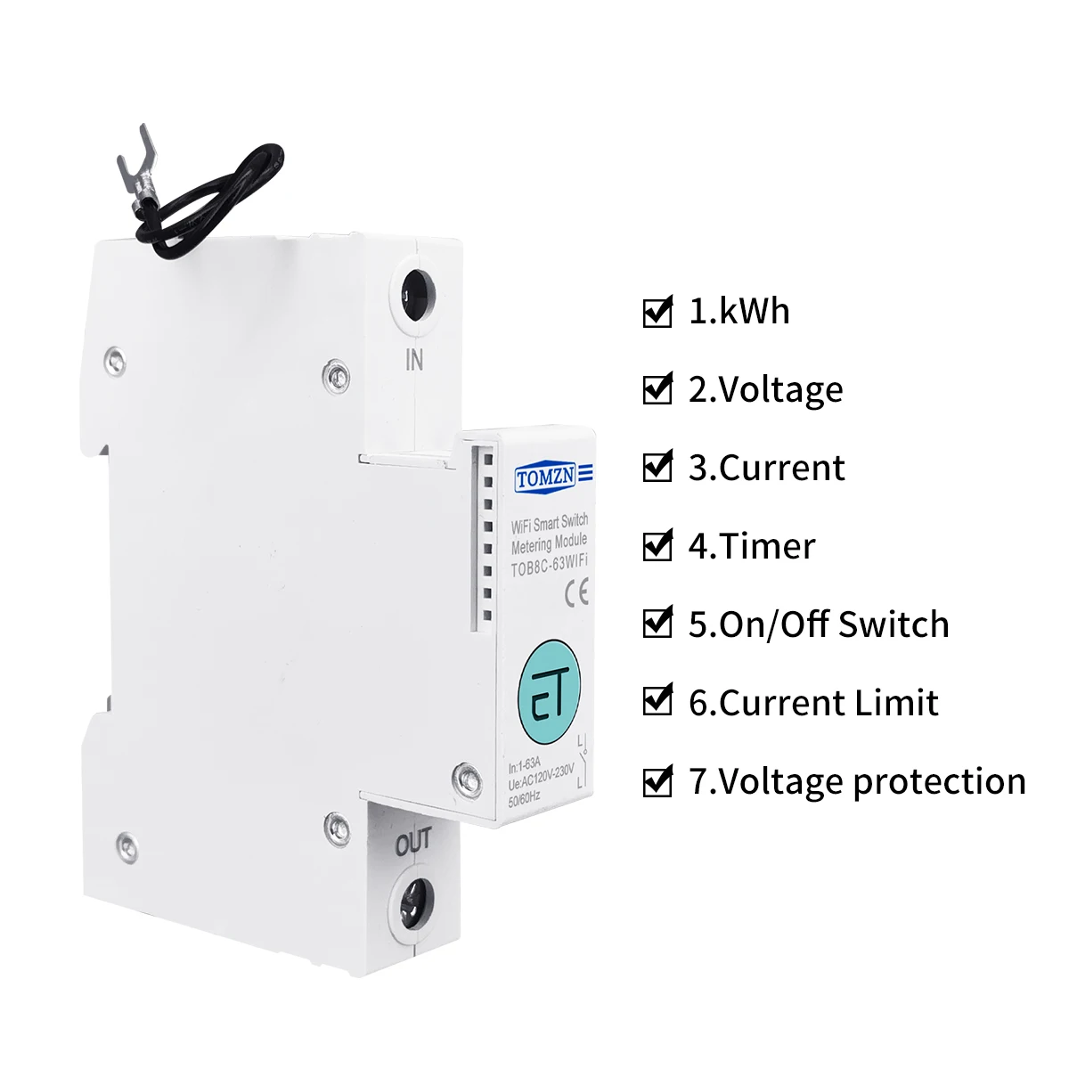 Однофазный смарт-выключатель ewelink 63A с Wi-Fi, измеритель энергии в кВтч, измерение схемы измерения, реле для умного дома TOMZN