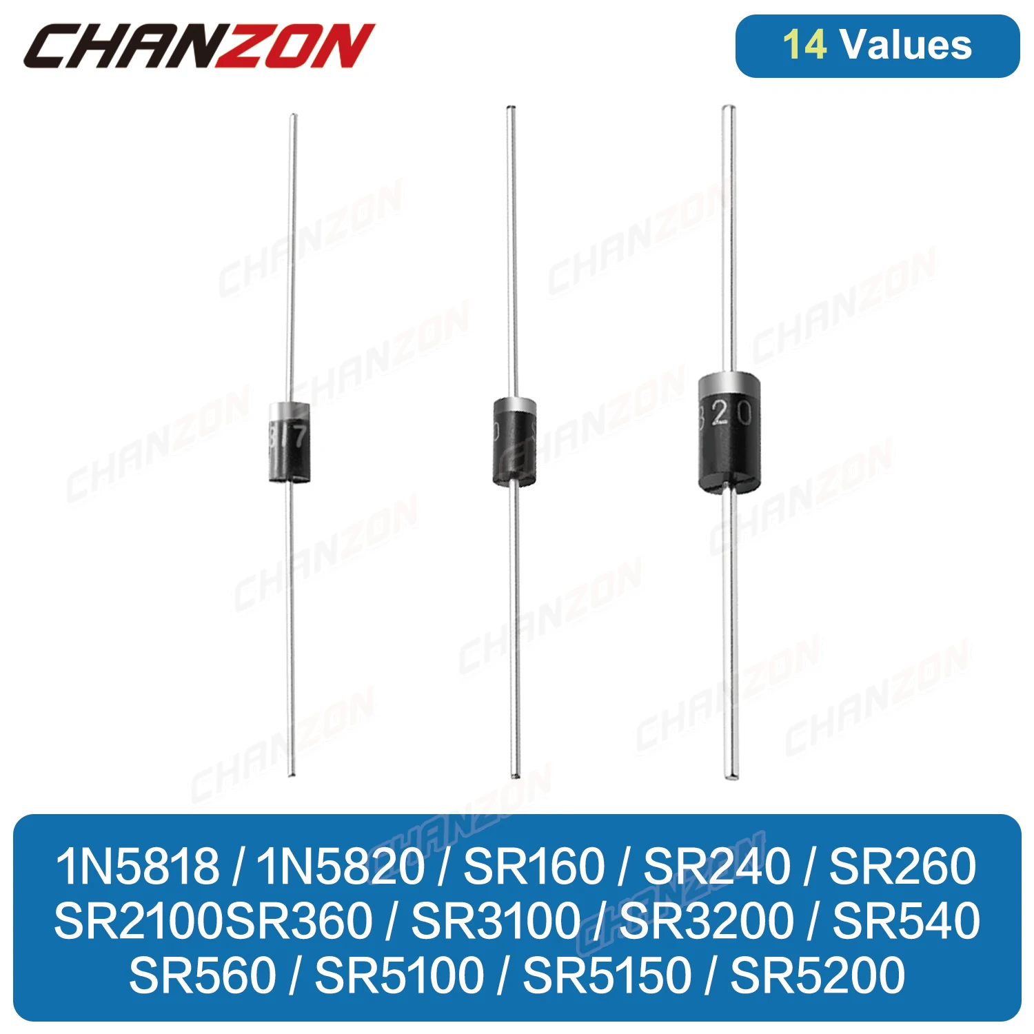 17 значений Диод выпрямителя барьера шоттки 1N5819 1N5822 1N5817 SR5100 SR3100 SR560 SR5200 1N5818 SR360 SR160 SR540 SR5150 SR240