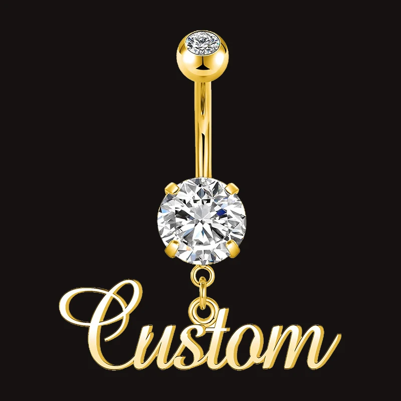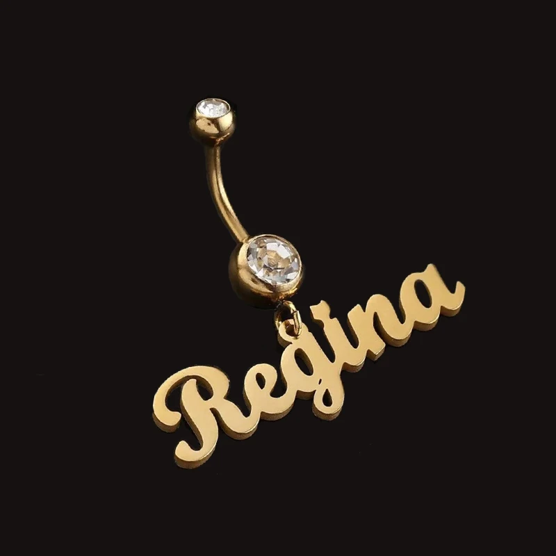 Именной пирсинг на пупок с именем на заказ, персонализированная табличка, кольцо на пупок с кубическим цирконием, сексуальное минималистичное ювелирное изделие, подарок