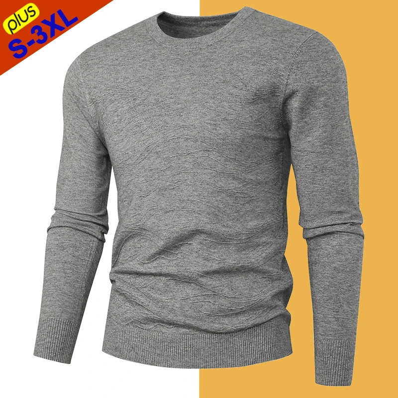 Мужской трикотажный пуловер с круглым вырезом, серый или черный