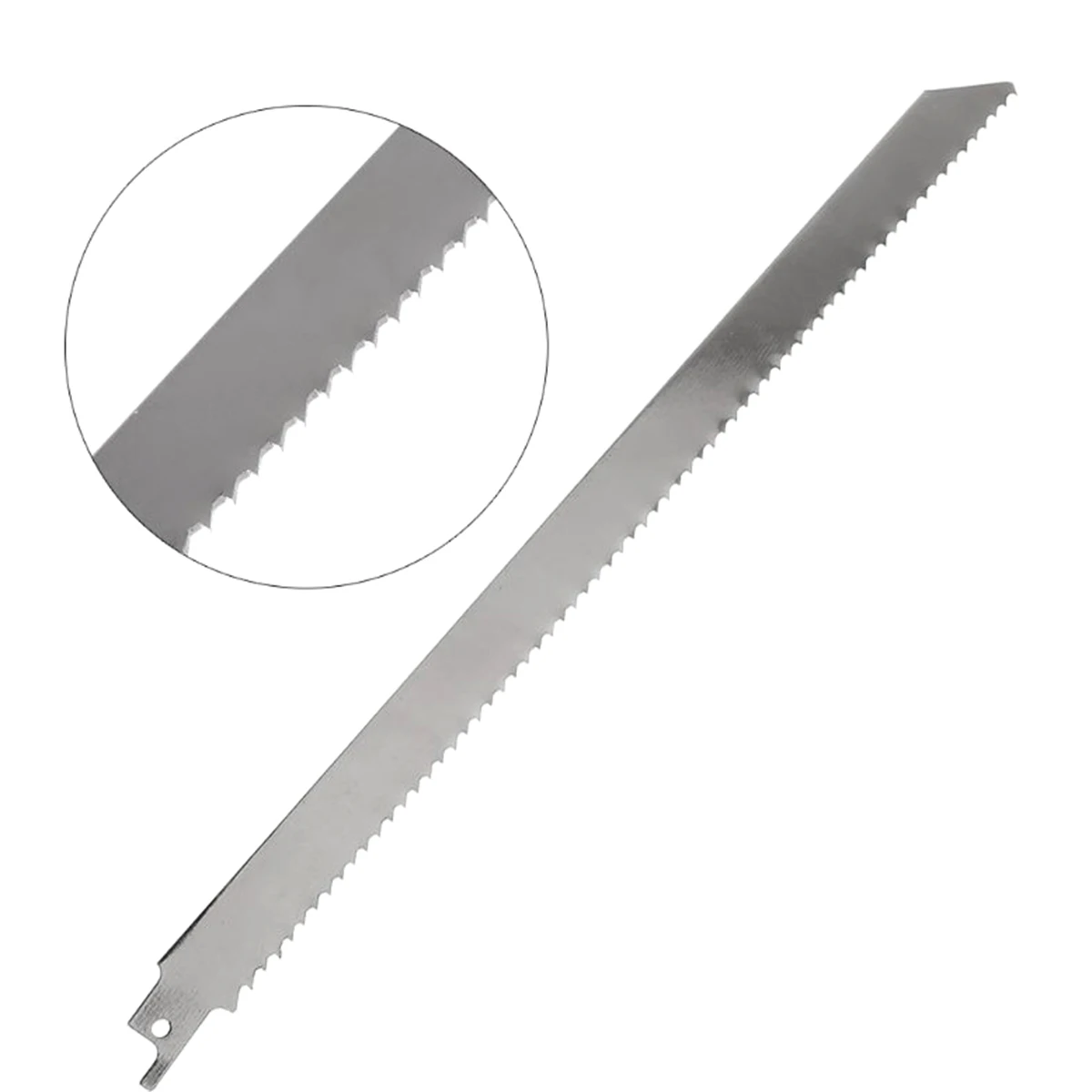 Спецификация:Название продукта: сабельная пилаМатериал: нержавеющая стальЦвет: серебристыйОбщая длина: 300 мм/11,81 дюймаДлина зуба: 280 мм/11,02 дюймаТолщина лезвия: 1,3 мм/0,05 дюймовШаг зуба: 7TPIМатериал резки: кубики льда, замороженное мясо, говядина, кости и т. Д.Количество: 1 шт.