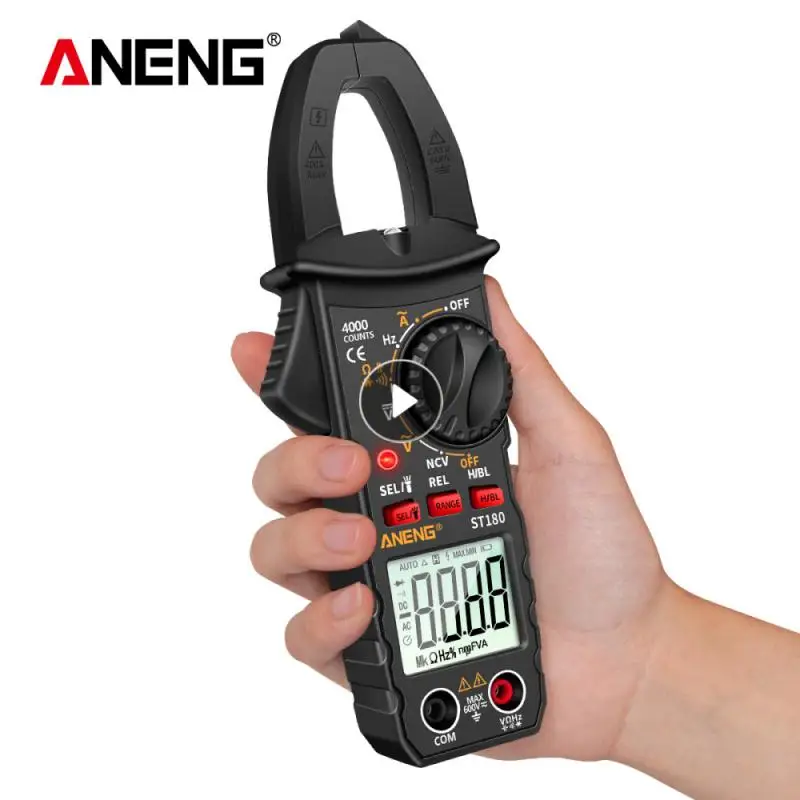 Цифровой мультиметр-зажим ANENG ST180, 4000 отсчетов, амперметр переменногопостоянного тока, тестер напряжения, автомобильный тестер ампер, Гц, емкость, Бесконтактный индикатор напряжения, токовый зажим