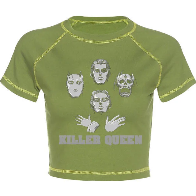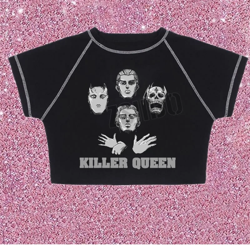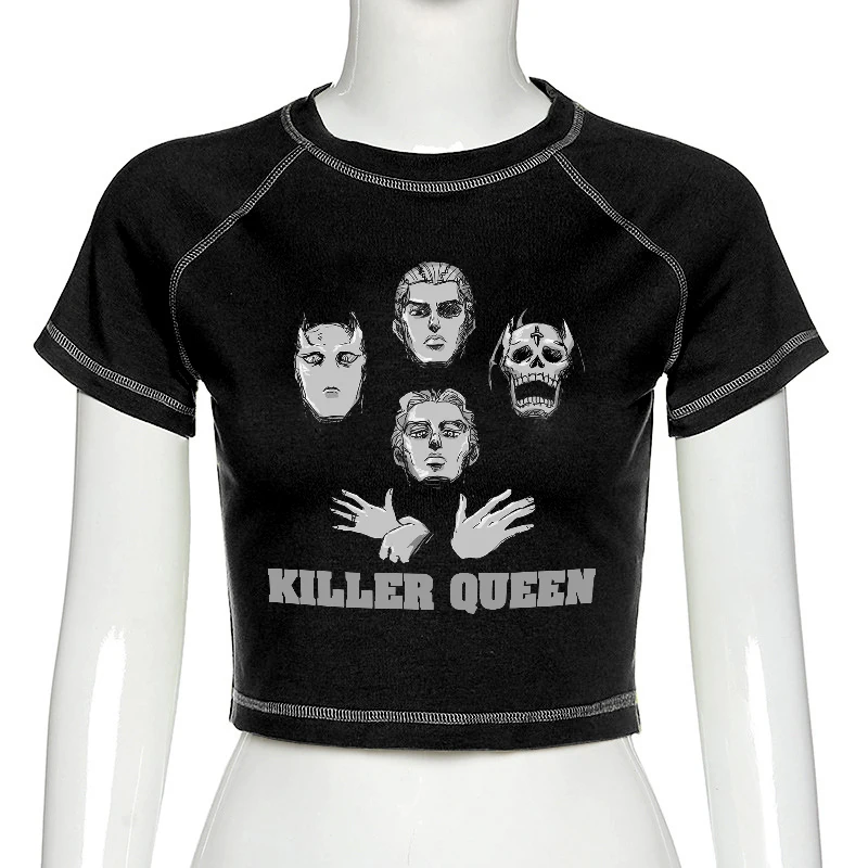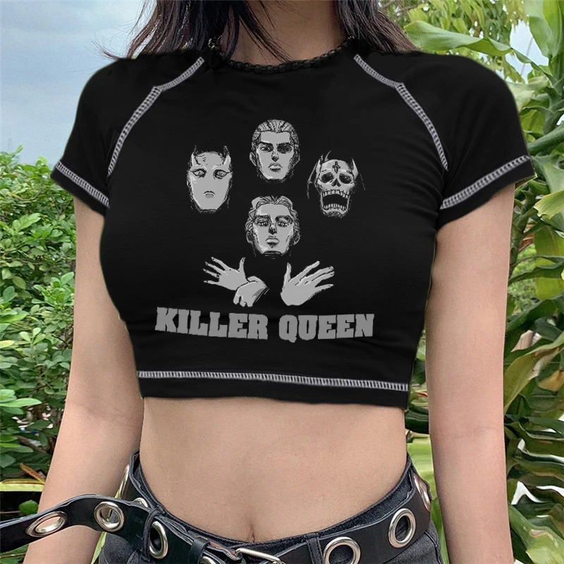 Футболка Jojo Y2K женская в стиле Харадзюку, кроп-топ в стиле ретро, Корейская, черная, в стиле панк, готика, с аниме принтом, с мультяшным принтом, одежда для женщин