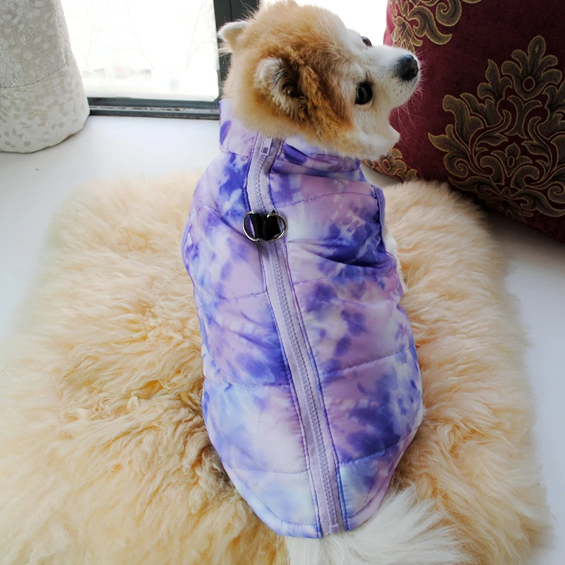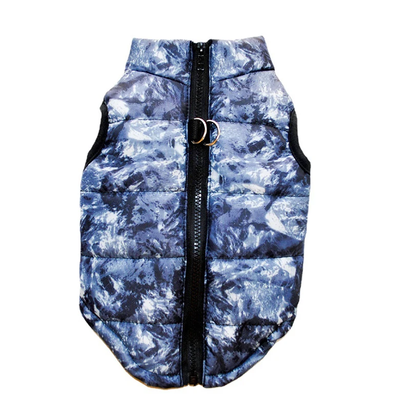 Хлопковый жилет для домашних животных, ветрозащитный, водонепроницаемый, теплый и удобный. Цвета яркие, узоры красивые, а стили новые. Застежка-молния на спине с пряжкой. Есть также разные цвета на выбор.