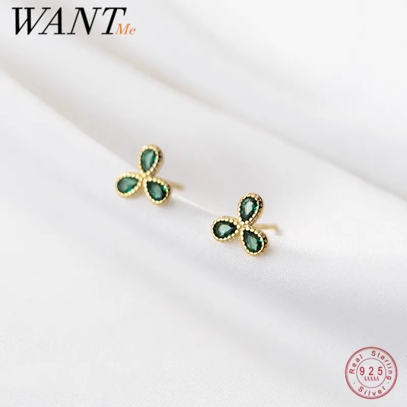 Женские серьги-гвоздики WANTME из серебра 925 пробы с зеленым Цирконом