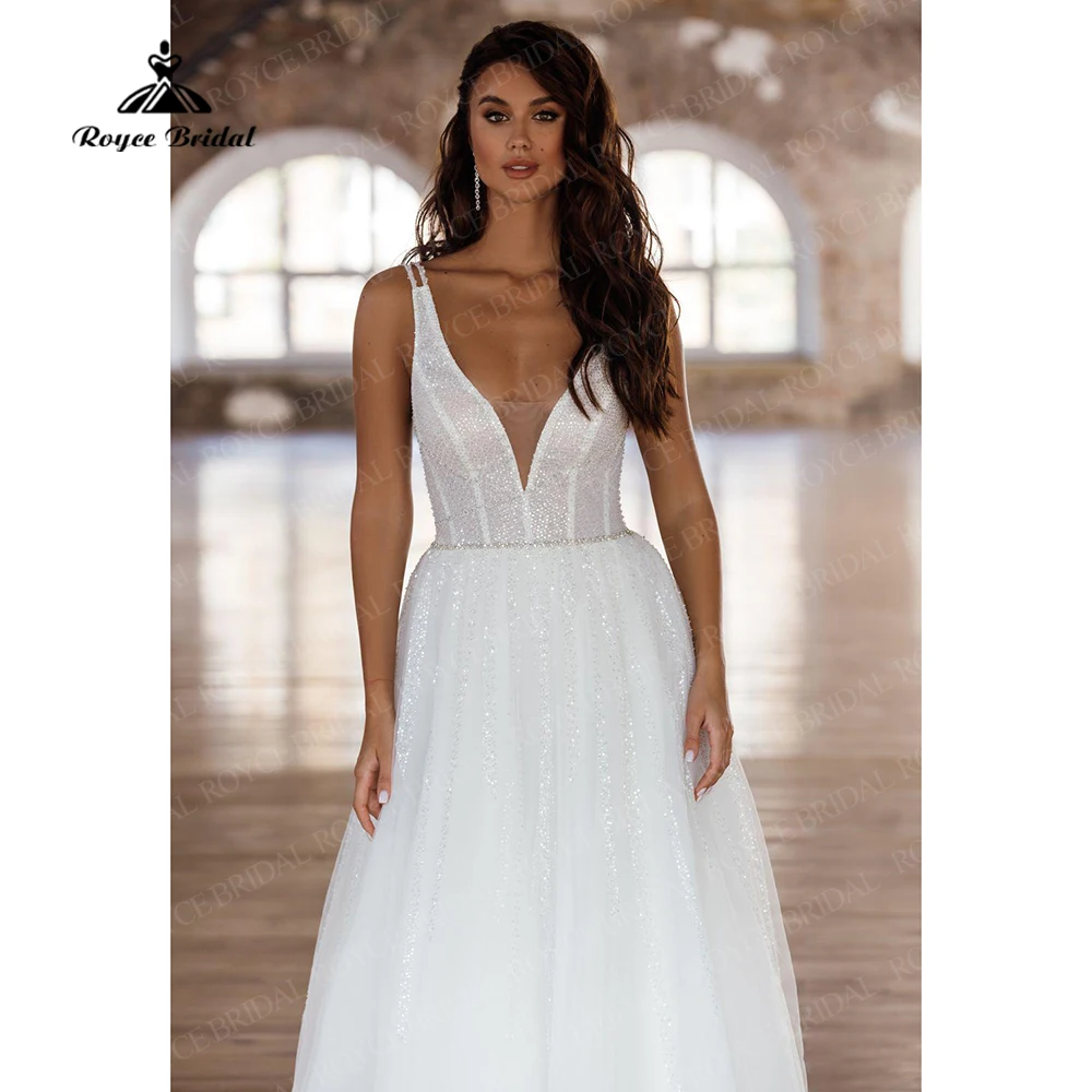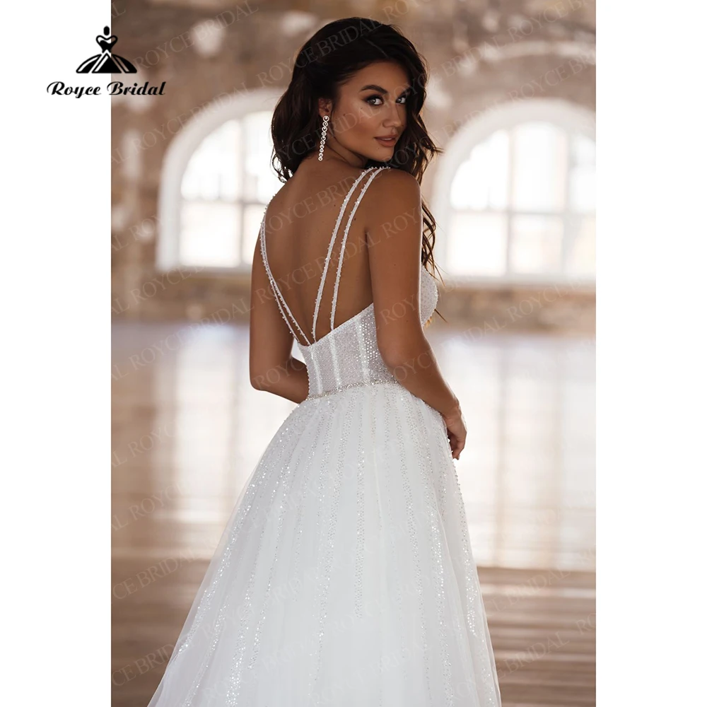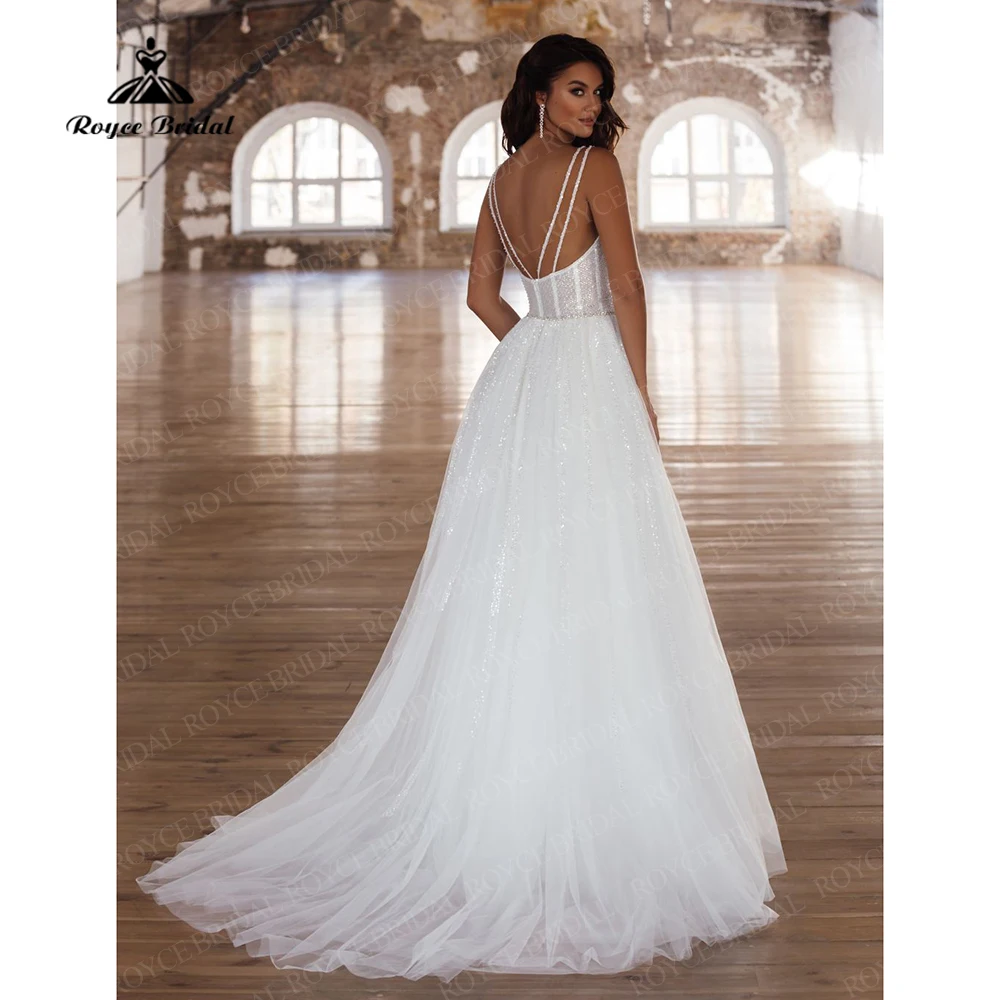 Сексуальное пляжное свадебное платье на бретелях-спагетти с глубоким V-образным вырезом и блестками, роскошное свадебное платье в стиле бохо, свадебные платья принцессы, платье Марии