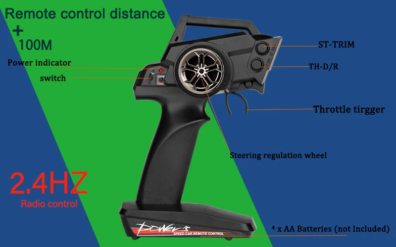 2,4 Ghz управления по радиоСвобода исходит отБеспроводная связь2,4 ГГц имеет большие преимущества, даже есть и другие люди в эксплуатации автомобиля в одном и том же пространстве, частота не будет мешать с одной и той же частоту.Расстояние управления не более100 м