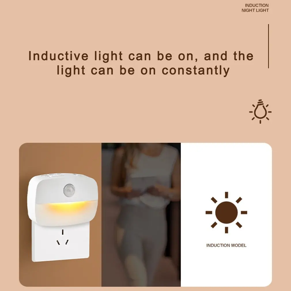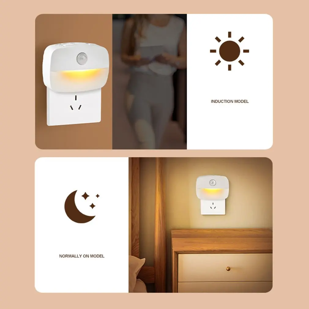 Светодиодный ночник с датчиком движения, настенный светильник для спальни, умное освещение для корпуса, лампа с датчиком освещения шкафа, европейская вилка, 1 шт.
